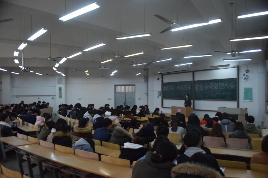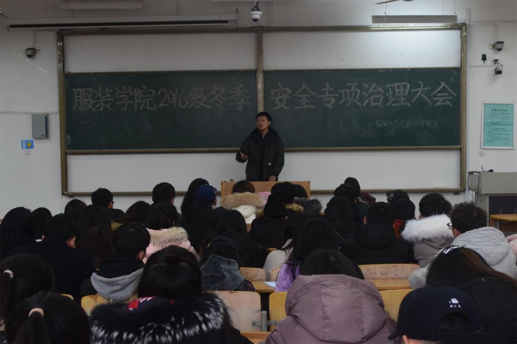 为加强校园安全管理,提高学生的安全意识,服装与艺术设计学院于12月21日中午在临潼校区B栋教学楼133室召开了2016级冬季安全专项治理大会。院团总支书记马薏雯、16级辅导员邵巍,2016级各班委及团学科组织副部长以上学生干部共100余人参加了此次会议。