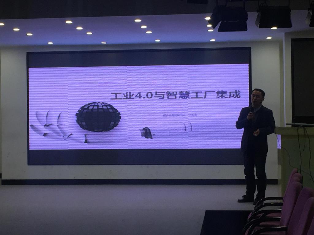 一楼多功能厅,为14级、15级服装设计与工程专业学生介绍关于“智能制造”为主题的讲座。
