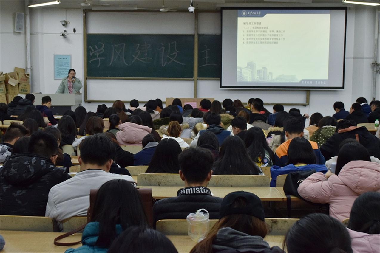 临潼校区B栋教学楼开展,设B137、B133和B233三个教室,分别由王丽丽、邢烜毓、梁育三位老师进行主讲。他们主要就学生请假旷课等纪律问题、校园安全问题、宿舍安全问题等几个方面展开了讲解。老师还强调了班级负责人的重要性,干部应充分履职,成为老师与学生之间沟通的桥梁,此外学生也应注意班级群的消息通知。