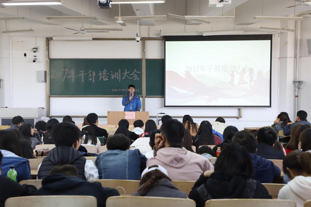 于2017年11月3日中午在临潼校区B-133教室召开了2017级干部培训大会。学院学工办主任张峰,团总支书记马薏雯,17级辅导员梁育,16级辅导员邵巍,临潼校区全体团学科干部及2016级,2017级全体班委共200余人参加本次大会。