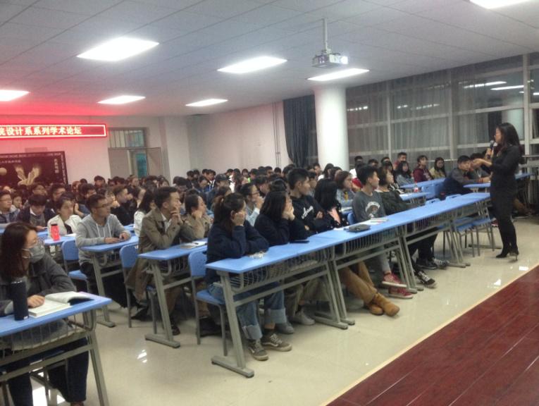 临潼校区人文管理楼214教室举行,共有来自产品设计系大二、大三的同学共200余人聆听了讲座。