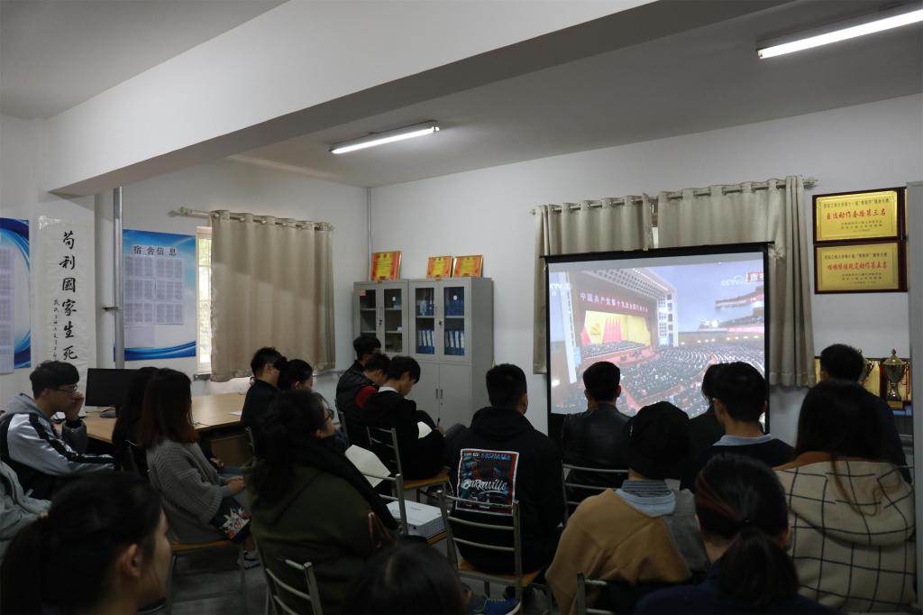 观看开幕式前,学院党委书记李筱胜作了简短讲话,他要求学院全体师生认真观看中共十九大的开幕式并真实地写下自己的心得体会。大会第一项,现场老师和学生全体起立,在庄严的肃穆的国歌声中迎接大会的开幕。随后,现场同学认真聆听了国家领导人习近平总书记在十九大中作的报告。了解了中国共产党第十九次全国代表大会是我国进入全面建成小康社会决定性阶段召开的一次十分重要的会议,也学习到此次会议的主题是:高举中国特色社会主义伟大旗帜,以马列主义、毛泽东思想、邓小平理论,“三个代表”重要思想、科学发展观为指导,解放思想,改革开放,凝聚力量,攻坚克难,坚定不移着中国特色社会主义道路前进,为全面小康社会而奋斗。报告中的扶贫、城乡区域发展、教育等是十九大提及的事关群众的民生问题,受到同学们的高度关注。在习近平总书记报告完毕后,观看开幕式现场爆发了热烈的掌声。
