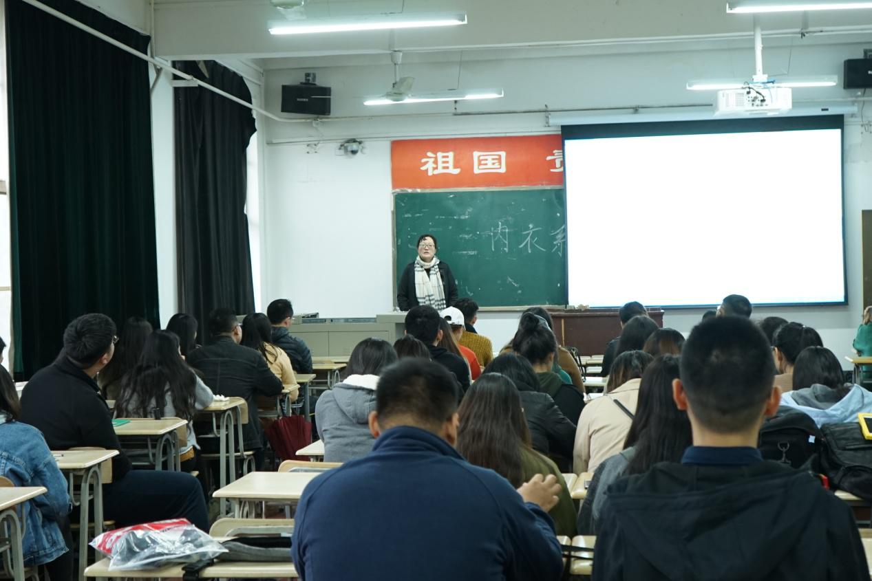 内衣系在金花校区1-409教室召开了2018届内衣班毕业设计动员大会。内衣系主任刘驰教授、周捷副教授、胡茗讲师、刘红彦讲师、王玉娟讲师、蔡京廷助教、温星玉助教,以及2014级内衣班全体同学参加了此次会议。会议由内衣系主任刘驰老师主持。
