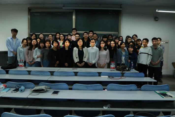 内衣系主任刘驰教授的特别邀请,内衣行业龙头企业——安莉芳集团执行董事副总经理鹿群女士及其公关部经理廖斌先生一行,第一次来到韩h漫