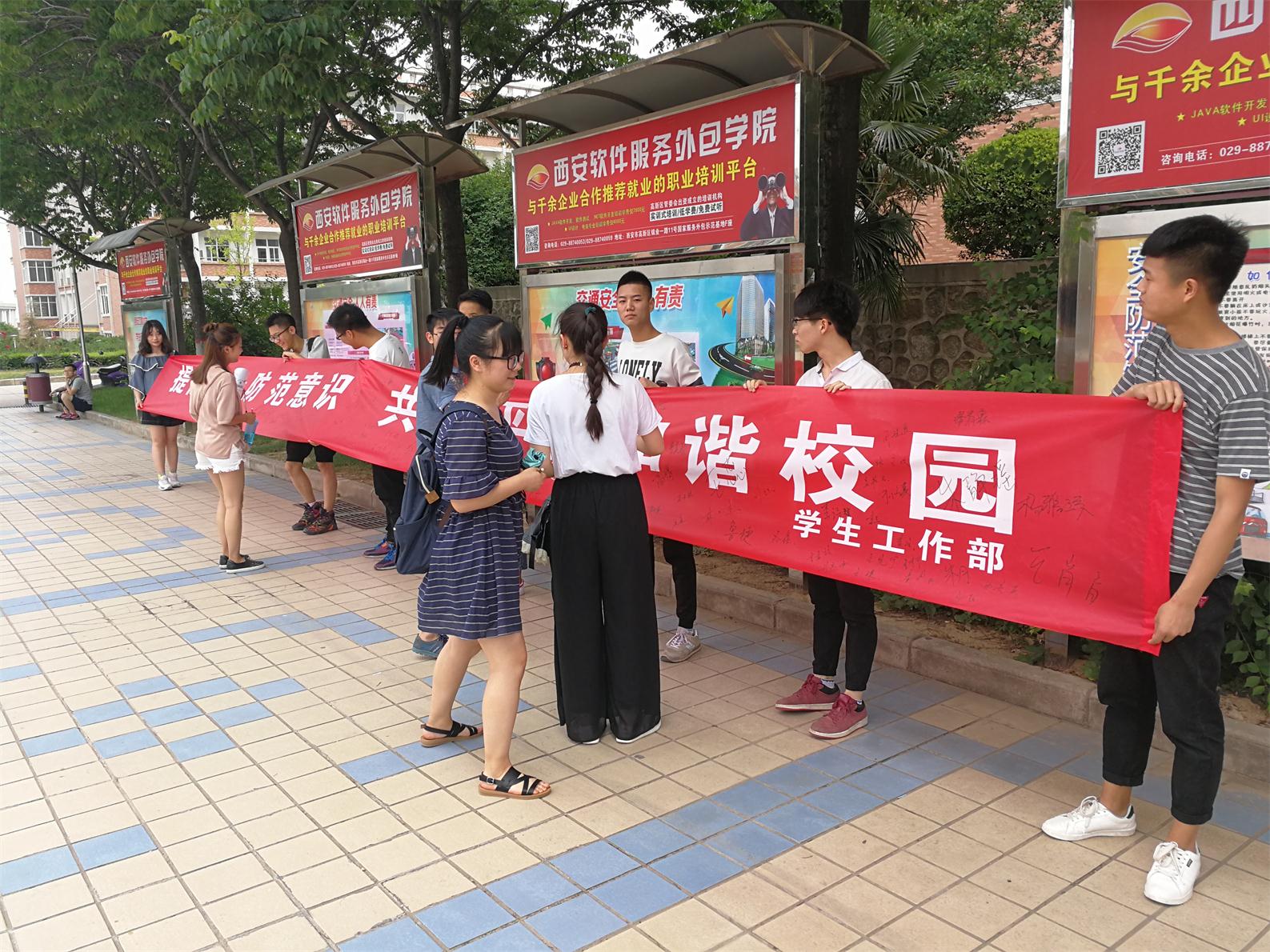 学生安全防范知识宣传展暨现场签名活动”在临潼校区中心广场举行。