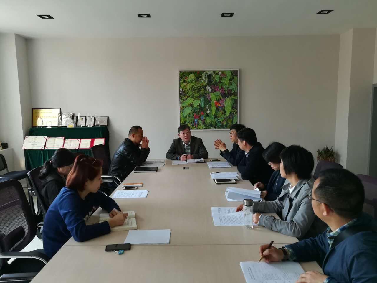 首先,戴鸿向与会人员传达了学校对于一级学科申请博士学位点工作提出的指导方针、工作要求、分阶段时间节点,并与参会人员一起对撰写的《申请博士学位授权点一级学科简况表》进行了审阅,逐项进行分析研究,指出材料的不足和需要修改的地方,强调在进一步完善材料的过程中要突出学科特色,确保申报材料的每一项内容都有证明材料支撑。