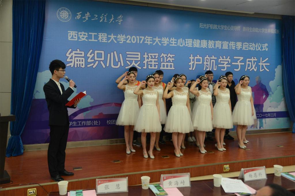 在临潼校区图书馆一楼报告厅举行了以“编织心灵摇篮 护航学子成长”为主题的2017年大学生心理健康教育宣传季启动仪式。校纪委书记朱君强,校长助理汪义瑞,党委宣传部、马克思主义学院、保卫处、学生工作部、校团委、大学生心理健康教育与咨询中心等相关单位负责人,各学院党委副书记、学生工作主管、兼职心理辅导员、班级心理委员及学生代表等200余人参加了启动仪式。本次启动仪式由学生工作部、校团委、大学生心理健康教育与咨询中心主办,韩h漫