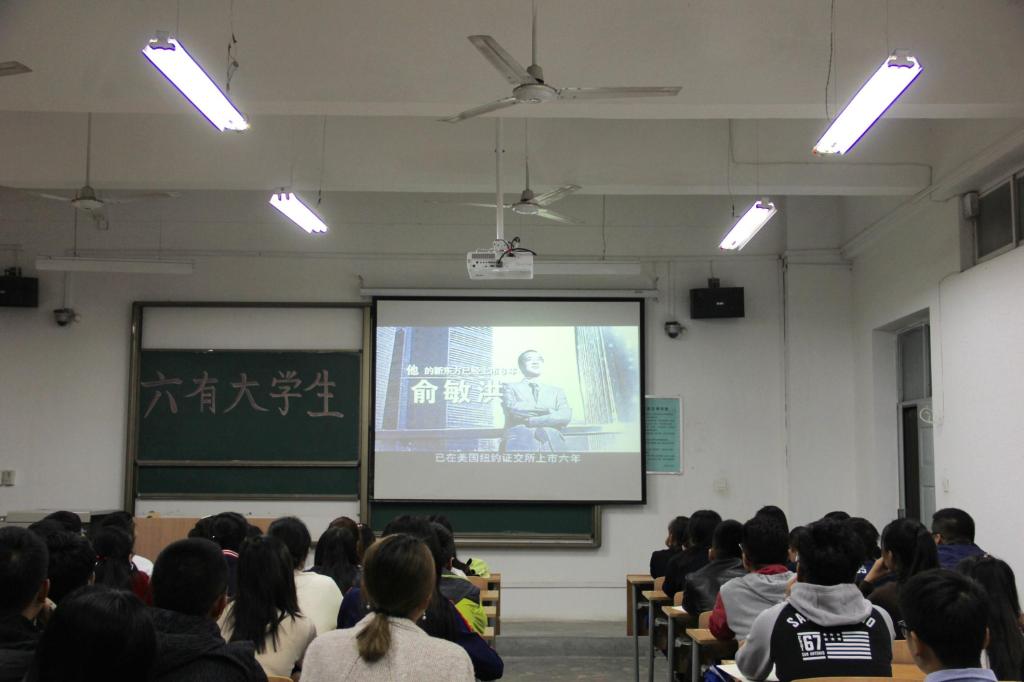 随后,全体学生观摩了宣传介绍“六有”大学生精神的视频内容,视频中讲述了俞敏洪自身坎坷经历及创业奋斗历程,激励广大学生坚信自己的目标,选择正确的方向并且为之奋斗。为了更好的将“六有”精神贯彻于校园以及每个同学的日常生活中,韩h漫