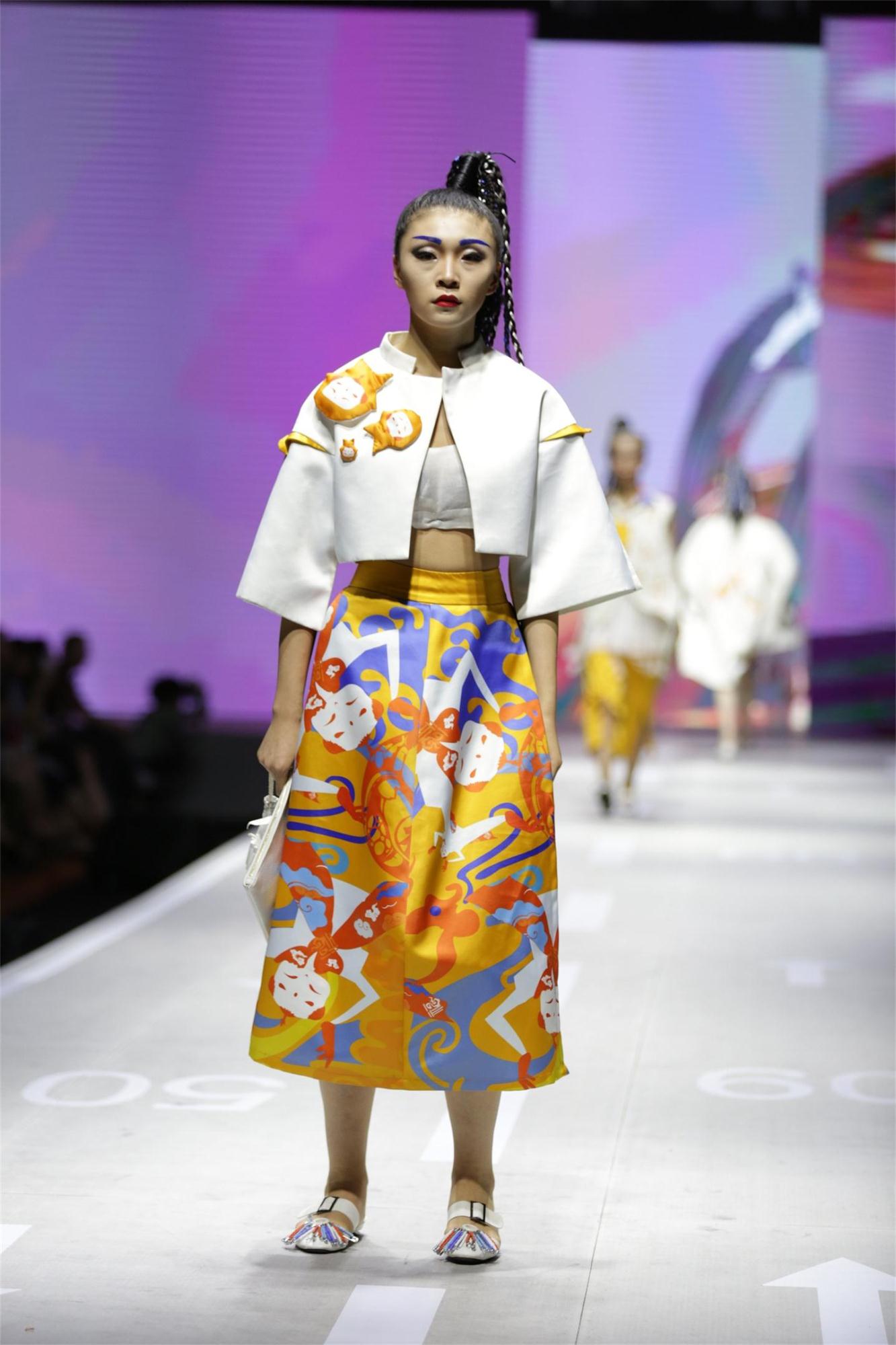 随后,进入到了比赛环节。参与本次服装设计大赛的服装设计毕业作品是从服装设计系与服装表演系近200多个系列中精选出来的30个系列近160余套优秀的毕业设计作品。本次毕业设计的主题为“奇幻之旅(Fantastic Trip)”。教学定位是从传统与现代、民俗文化与多元文化的碰撞中寻找设计灵感,考查毕业生驾驭多种元素进行综合设计的能力。本次服装毕业设计大赛作品的特色主要体现为将大西北的粗犷稚拙,与民间手作的华丽精美,以及充满时尚趣味的流行文化相结合,呈现出多种风格杂糅、多元文化碰撞、奇特梦幻的整体风貌,为观者带来了穿越时光隧道般的“奇幻之旅”。