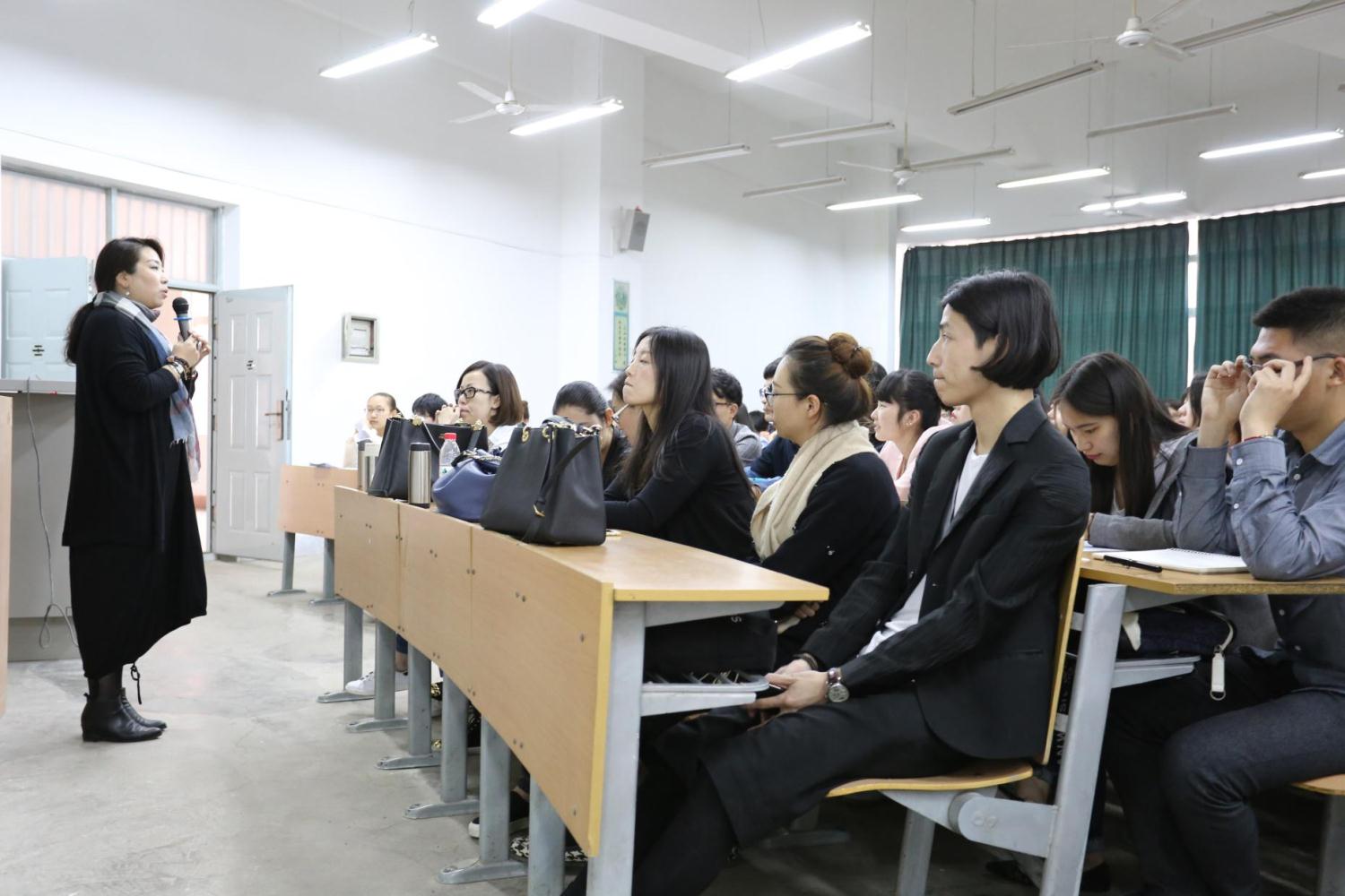 于4月12日下午四点在临潼校区教学楼B栋133室邀请一行一线工作室创始人、无上无下独立设计师品牌设计总监刘宇航、朱健老师开设以“服装设计大赛你了解多少?”为主题的讲座。服装系主任袁燕老师及其他专业老师出席讲座,全体2013,2014级服装艺术设计、针织艺术设计专业学生参会。讲座由袁燕老师主持。