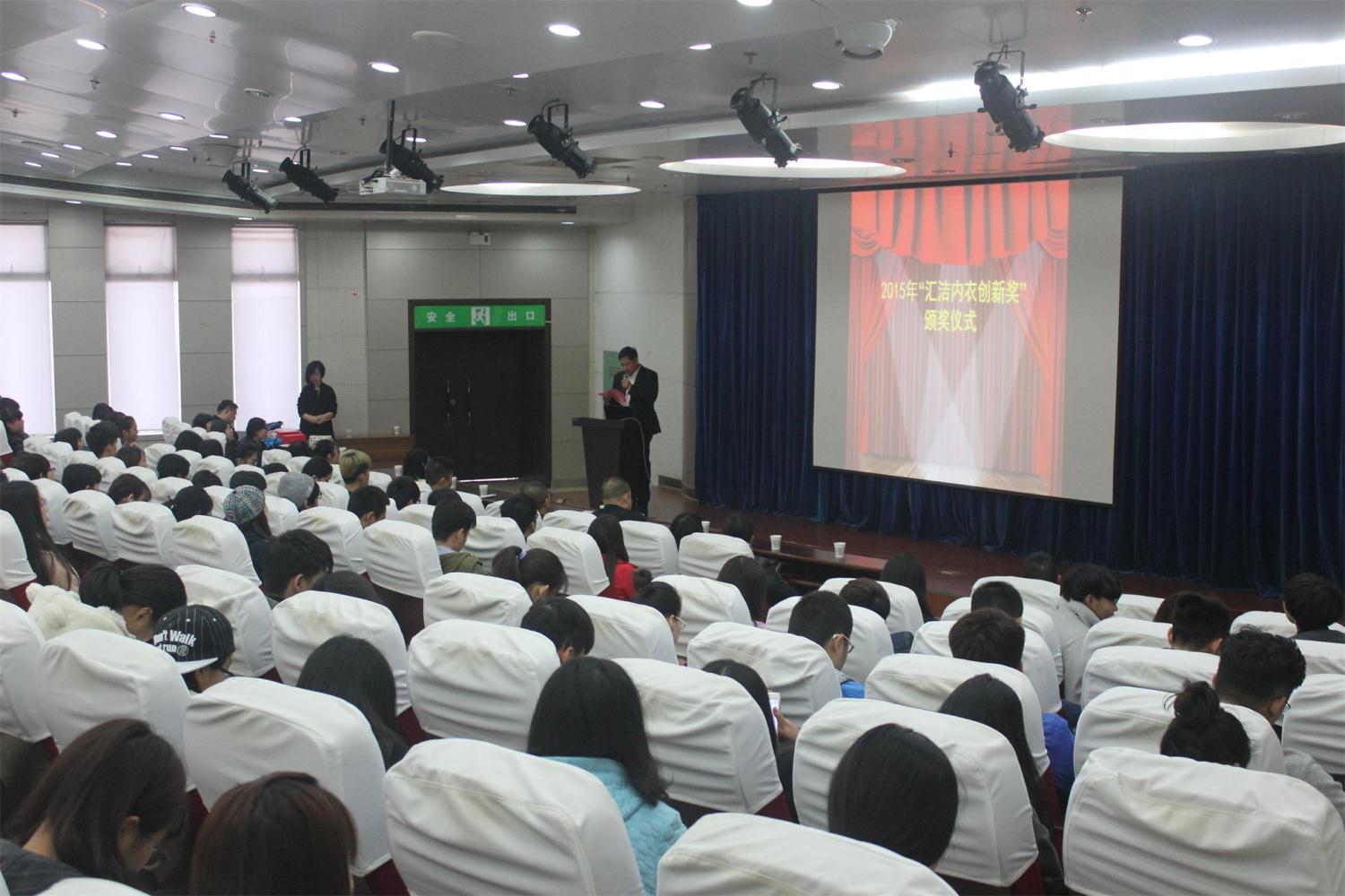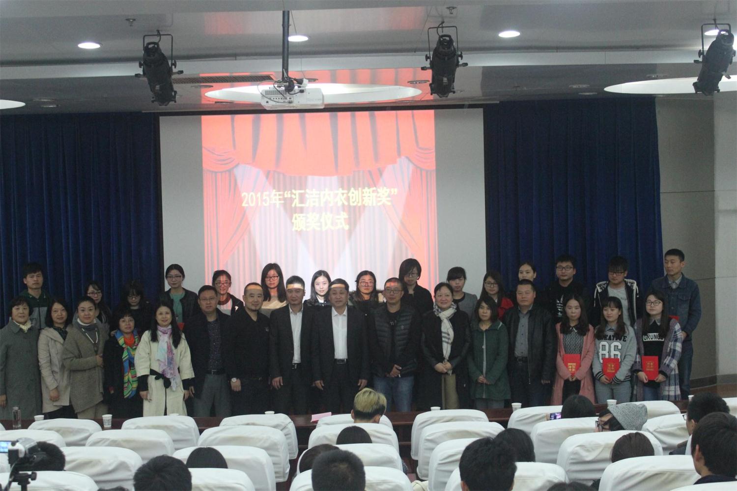 在临潼校区图书馆一楼报告厅举行了2015年汇洁内衣创新奖颁奖典礼暨2016年申报启动活动。汇洁集团副总刘铁兵、汇洁集团陕西地区总监廖春江,韩h漫