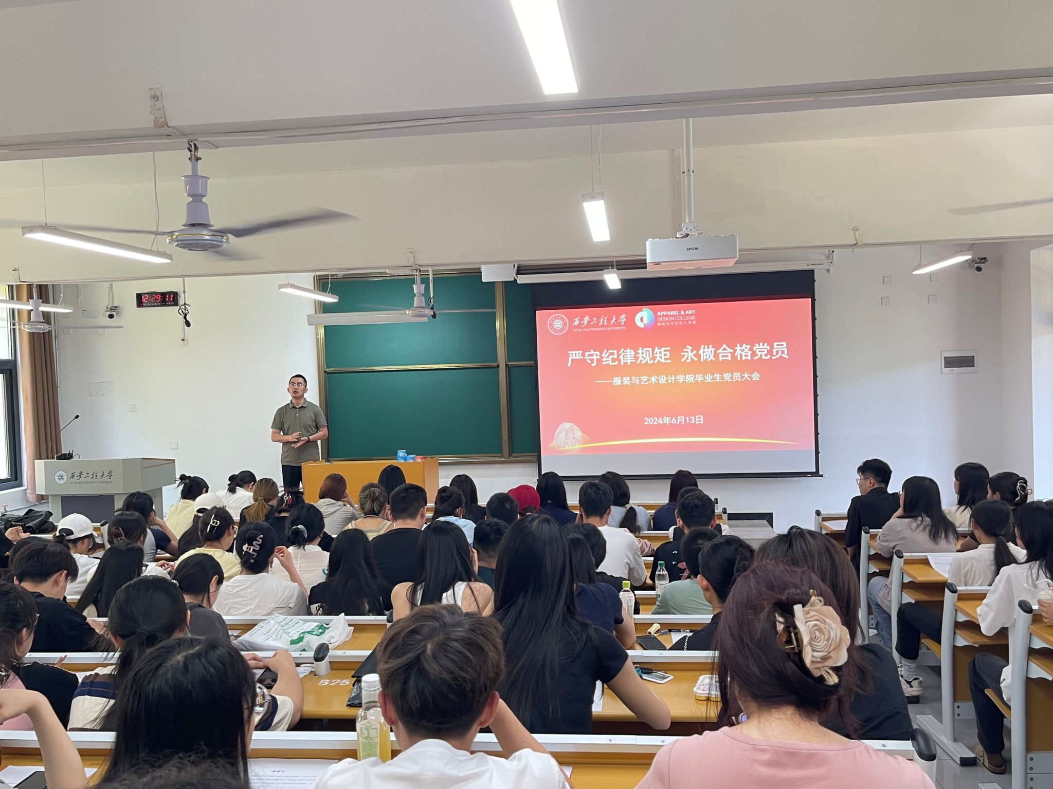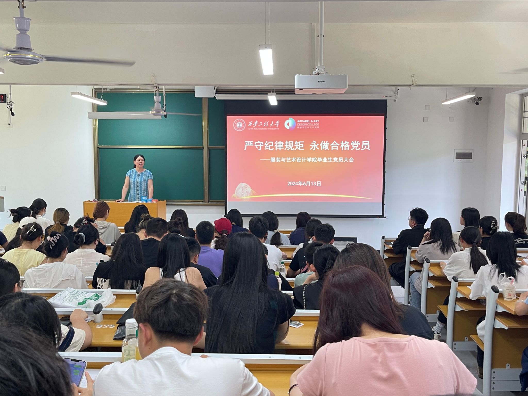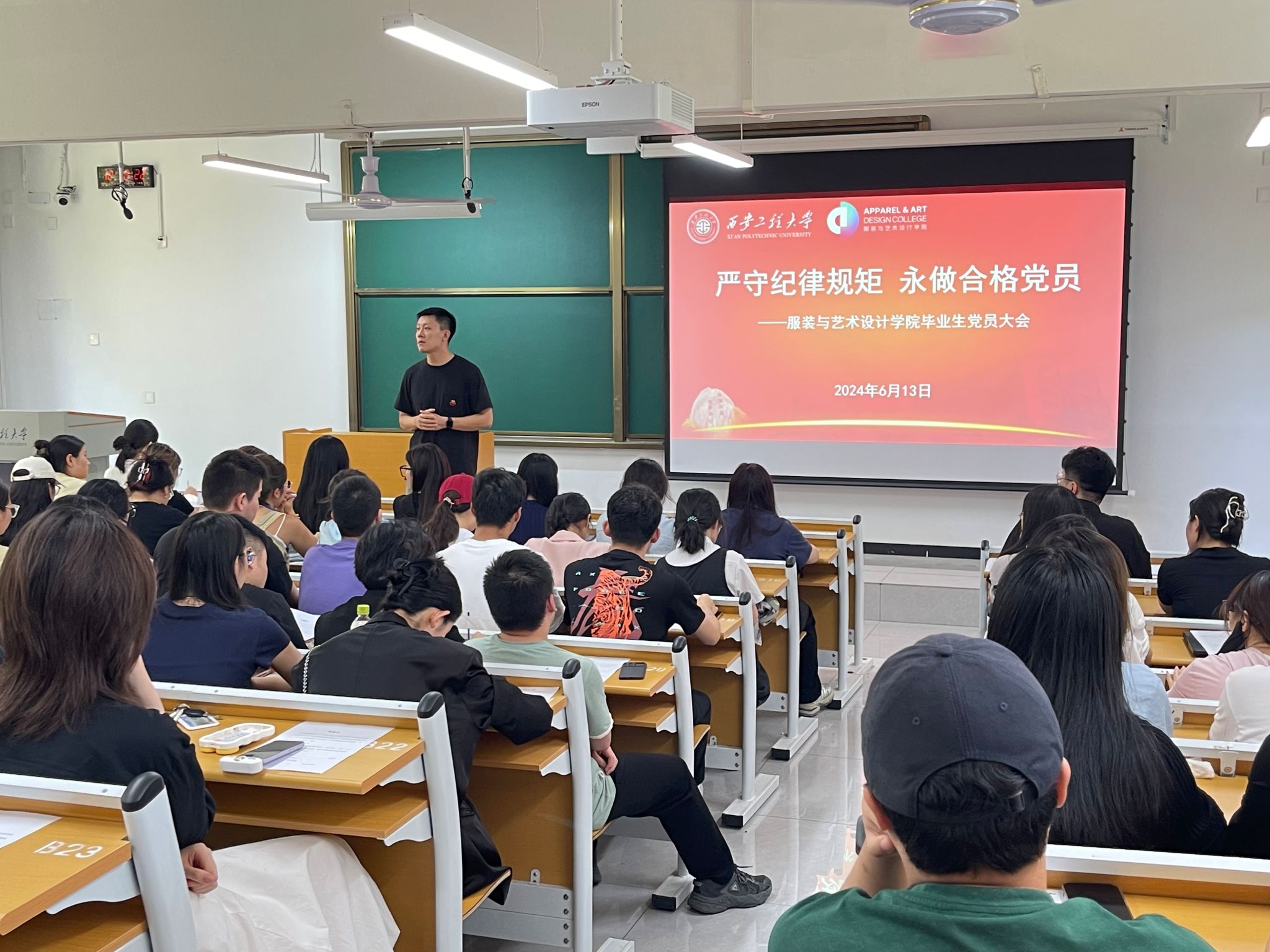 在金花校区主楼301教室举行“严守纪律规矩,永做合格党员”主题党日活动。学院副处级组织员吴艳杰、本科生20级辅导员邵巍、王盼及140余名2024届本科生毕业生党员参加活动。