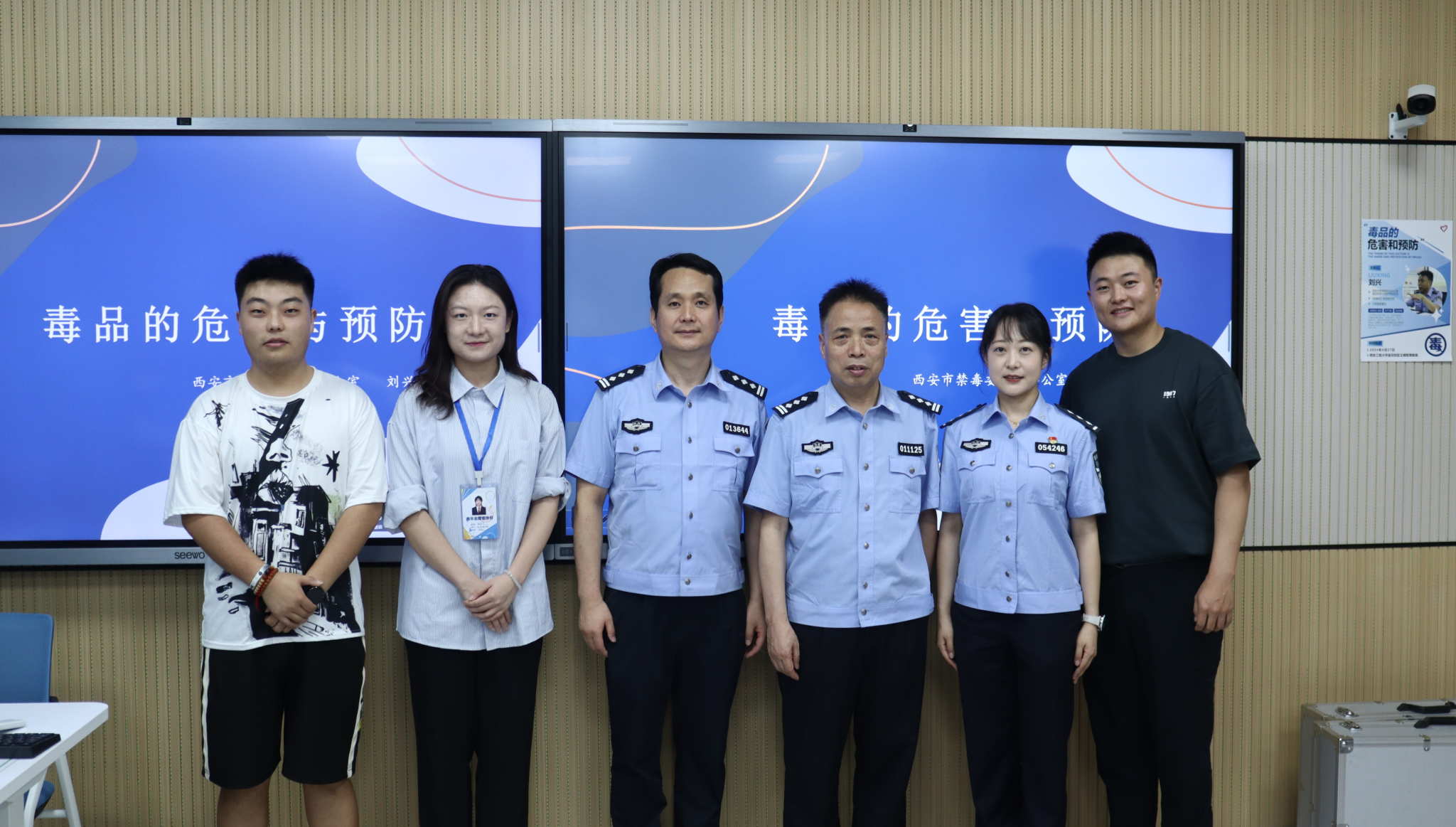 (西安市禁毒支队和碑林分局禁毒大队民警与参会师生合影)