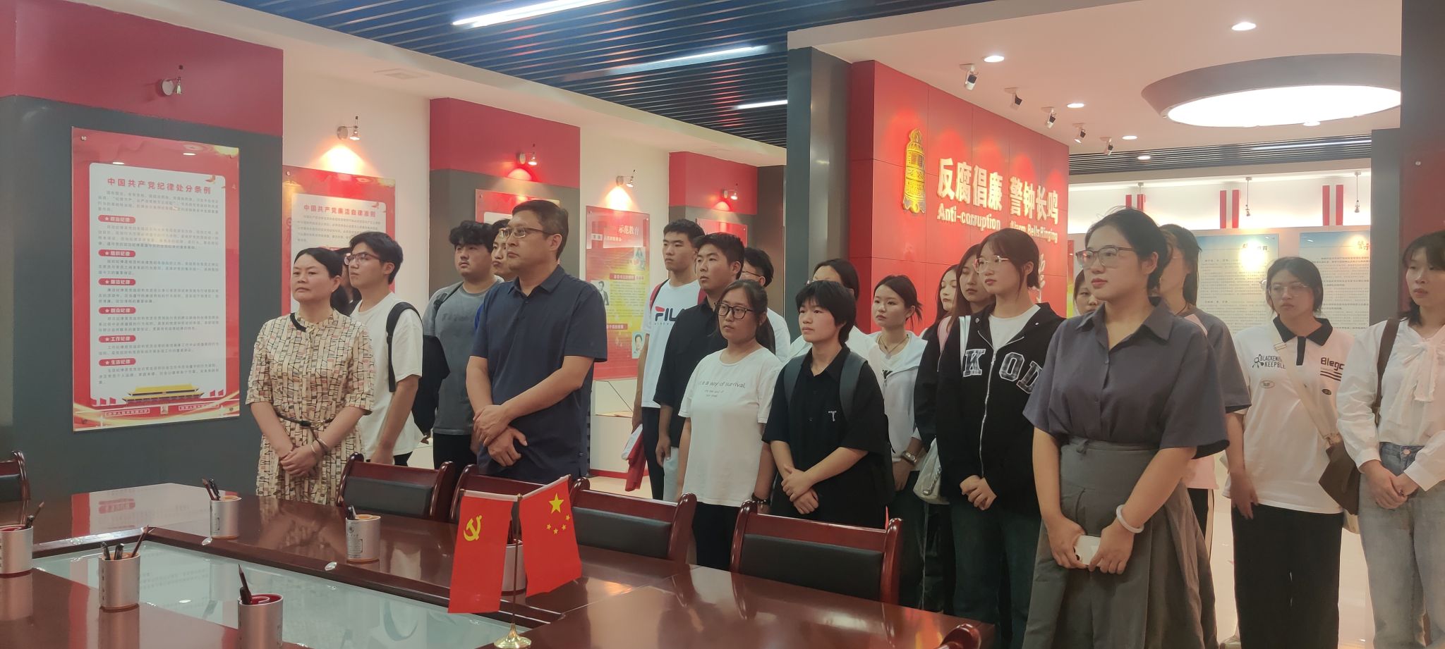院党委书记苏博、院党委副书记马磊、副处级组织员吴艳杰、2024级新生辅导员王盼、姜萌,带领本科生服工党支部参观校廉政教育基地,开展“清风扬正气 廉洁守初心”主题党日活动。
