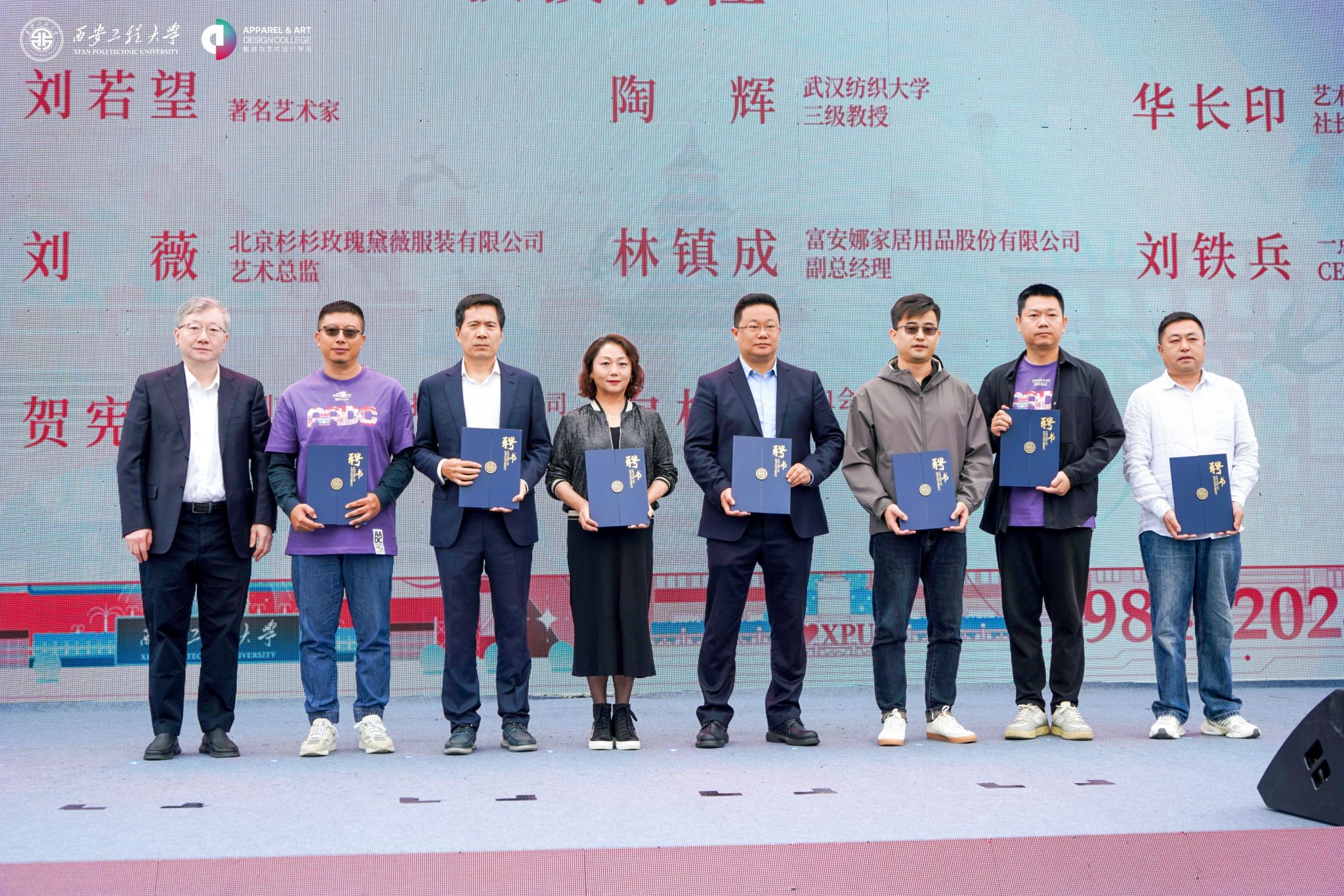 会上,副校长朱永民为叶菲校友等及企业代表颁发捐赠证书;副校长戴鸿为著名设计师韩家英、刘薇,著名艺术家刘若望,武汉纺织大学教授陶辉等10人颁发客座教授聘书;副校长夏蔡娟、张洛红为富安娜集团副总裁杨彬,意尔康股份有限公司研发副总经理李海章,影儿时尚集团华中分区总经理何曦等20人颁发行业导师聘书;韩h漫