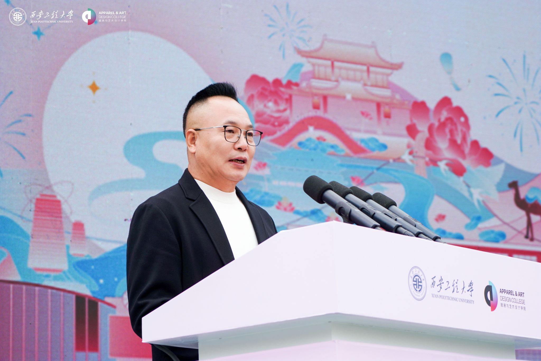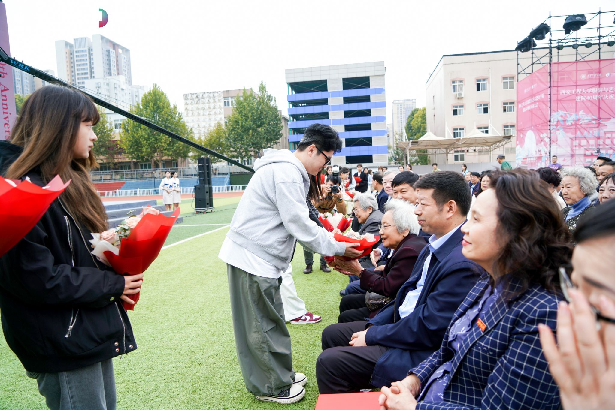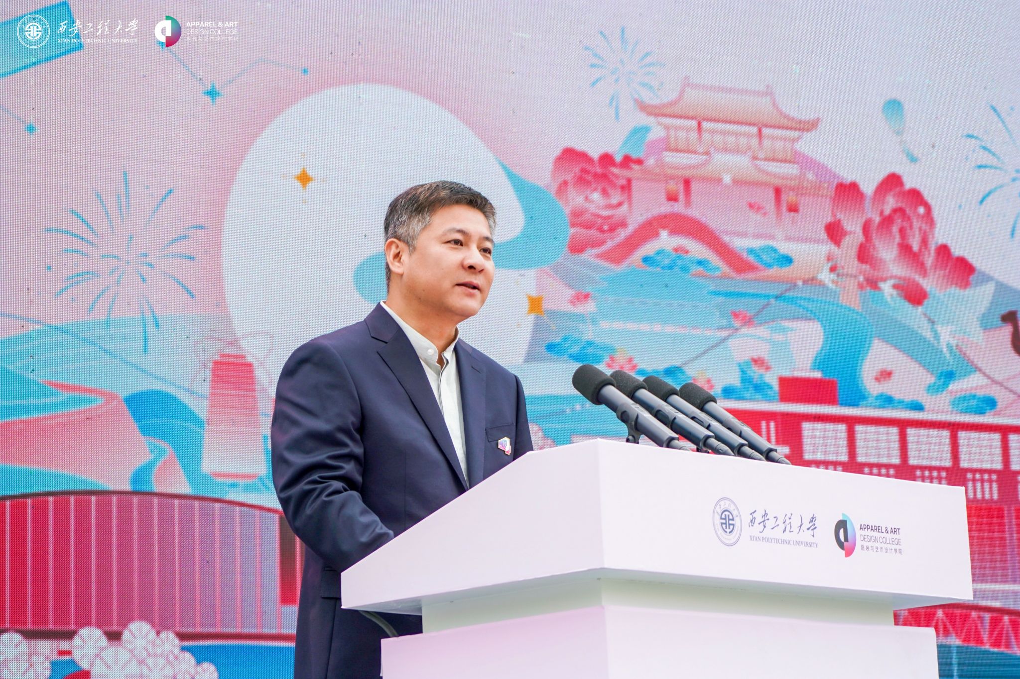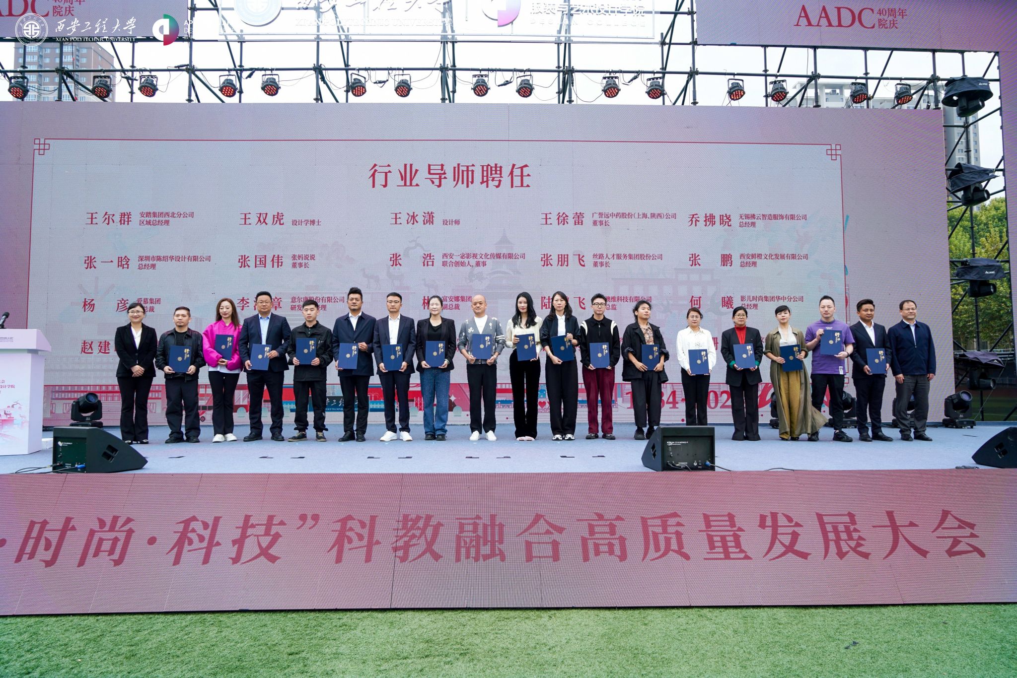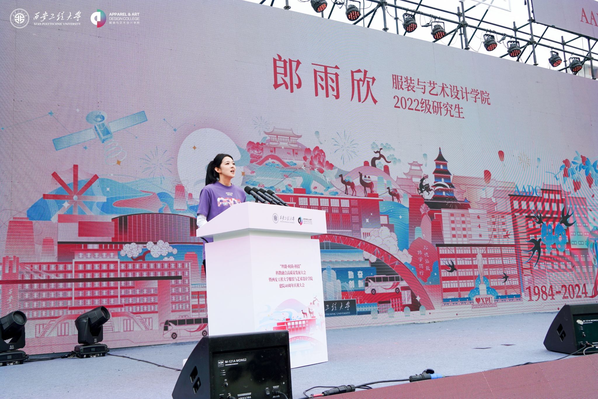 在金花校区举办“丝路 时尚 科技”科教融合高质量发展大会暨建院四十周年庆祝大会。校领导马万清、朱永民、戴鸿、夏蔡娟、张洛红,国内相关领域专家学者、行业领军人物、企业代表及支持学院发展的社会各界朋友,学院老领导、离退休教师代表,校友代表,学校各职能部门负责人及学院师生共4000余人欢聚校园,共庆华诞。