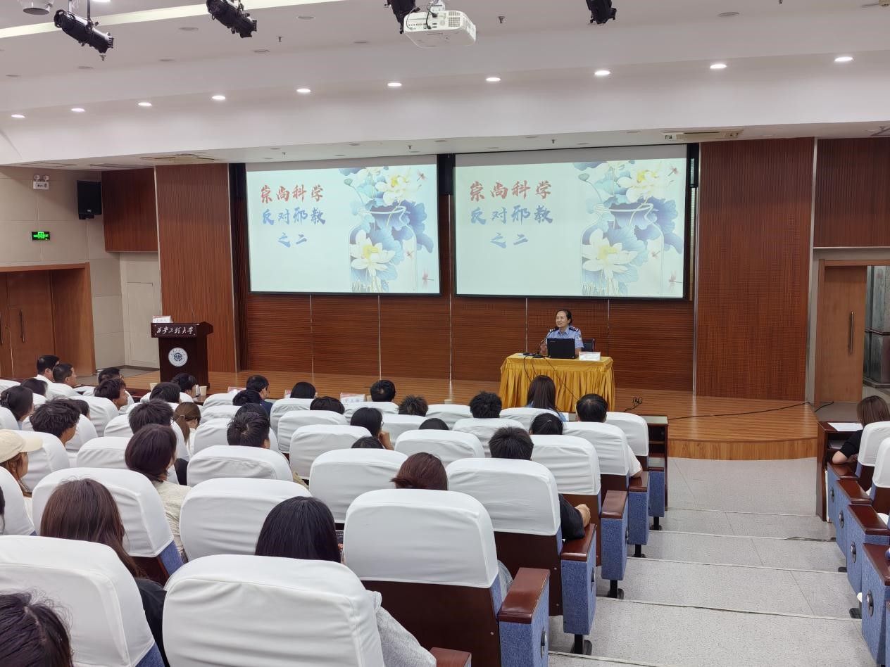 吕警官以“铲除邪教土壤、筑牢安全屏障”为主题,深入浅出地剖析了邪教的本质、危害及识别方法,通过生动的案例分析和详实的数据展示,让同学们深刻认识到邪教对个人、家庭及社会的严重危害。她强调,作为新时代的大学生,应树立正确的世界观、人生观、价值观,自觉抵制邪教诱惑,积极参与反邪教斗争,共同维护校园和社会的和谐稳定。