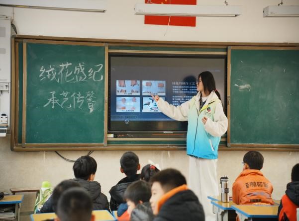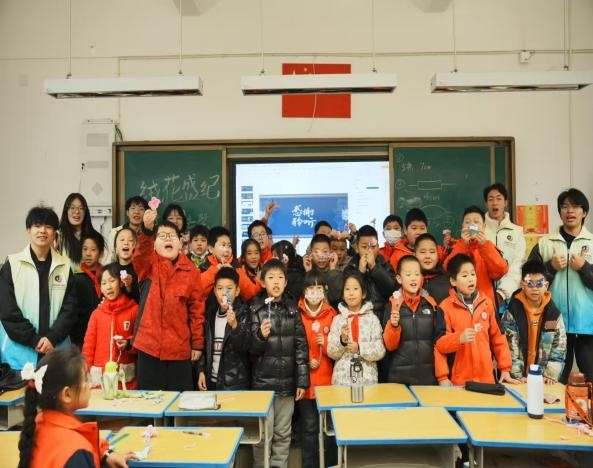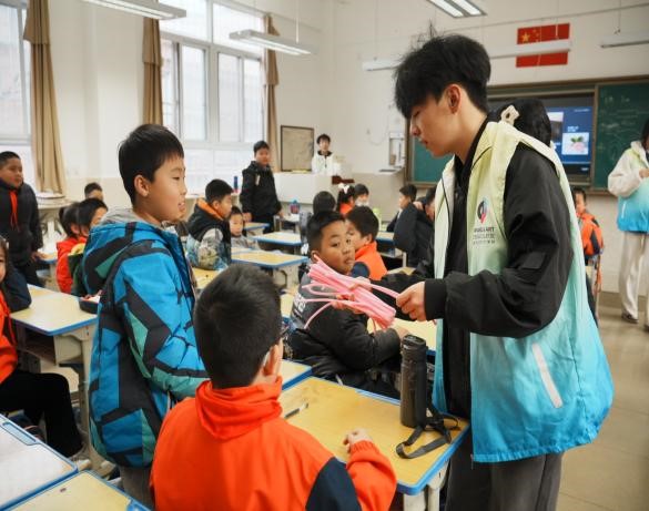师生按时抵达了康复路小学,他们精心筹备,为该校的孩子们带来了本学期第7次美育润心特色社团课程,也是本学期最后一次社团课程。此次课程以“绒花盛纪,承艺传馨”为主题,通过手工制作针织花朵,培养小学生们的动手能力和创造能力。在课程进行的同时,他们还分享了色彩搭配的技巧,将艺术的种子轻轻播种在孩子们的内心。