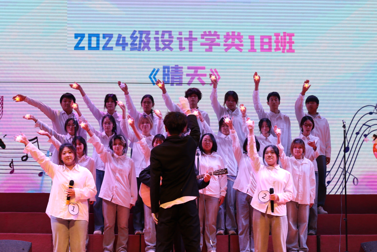 学生会文艺部带来了精彩的开场舞蹈《Yonce》,扎实的舞蹈功底与自信、阳光的精神风貌赢得了现场观众的阵阵掌声,为本次比赛拉开了精彩序幕。经过初赛的激烈角逐,共有11支队伍进入决赛。在决赛过程中,各参赛班级精心准备、用心设计。他们身着整齐划一的服装,面带自信的微笑,以良好的精神风貌依次登台亮相。从经典歌曲到现代流行金曲,同学们通过独特的编排和演绎方式,赋予了每一首歌曲新的生命力。有的班级加入了深情的朗诵环节,有的有现场乐器伴奏,有的则融入了精彩的舞蹈元素,使得表演更加丰富多元。现场气氛热烈,喝彩声不断。