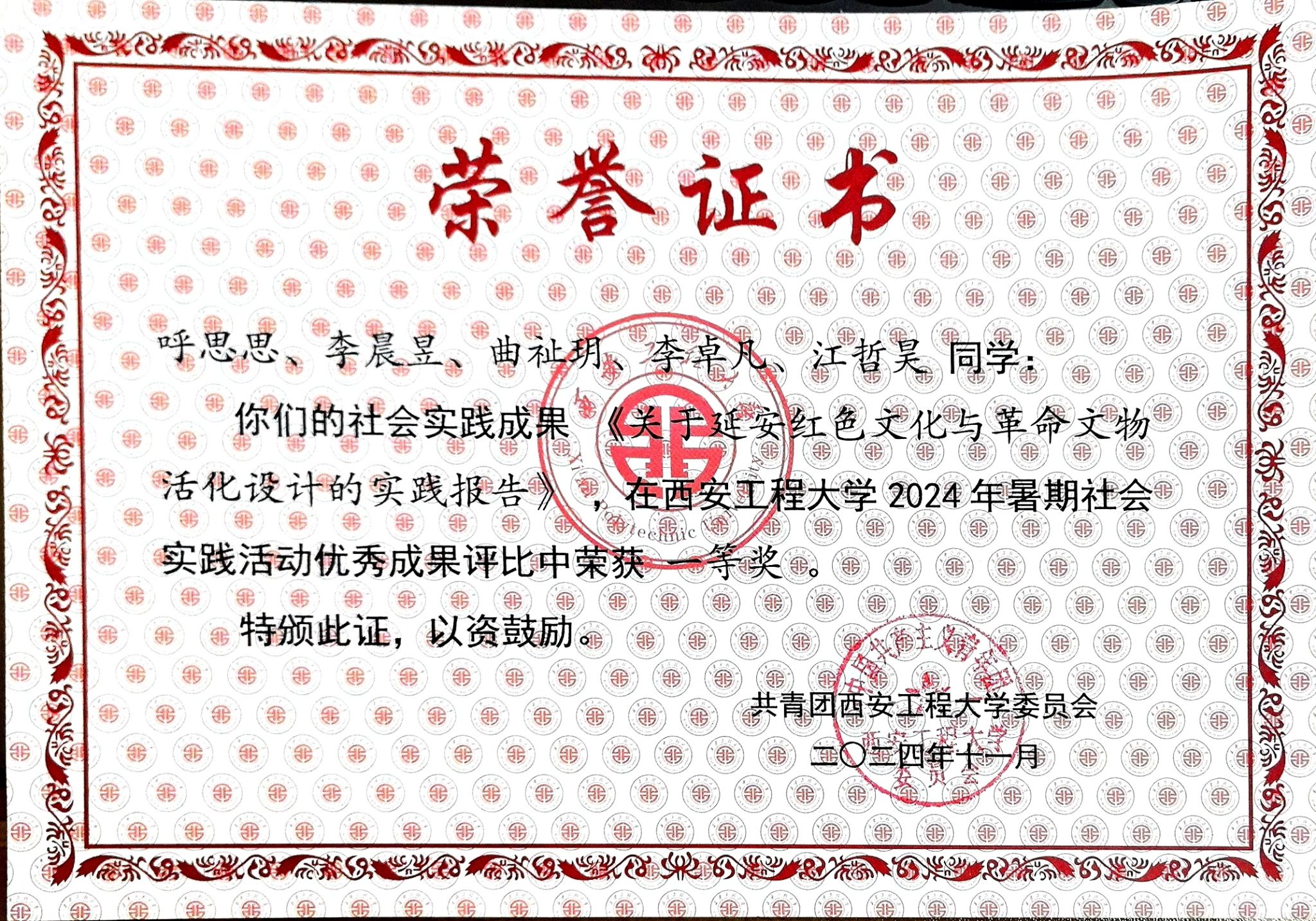 自2023年起,“红艺新苗”团队通过扎实的调研走访与精心的研究设计等暑期社会实践活动,成功探索出“多维设计+多元传播”的红色文化创新路径,秉持“用设计赋能红色教育,用文物传承红色历史”理念,为青年传承红色历史指明新方向。两年间,团队屡获佳绩,先后荣获2023年暑期社会实践校级优秀成果三等奖、2024年暑期社会实践省级优秀调研报告及校级优秀成果一等奖,并在全国大学生数字媒体科技作品及创意竞赛中获省级三等奖,其对延安梁家河小米的包装设计成果斐然。