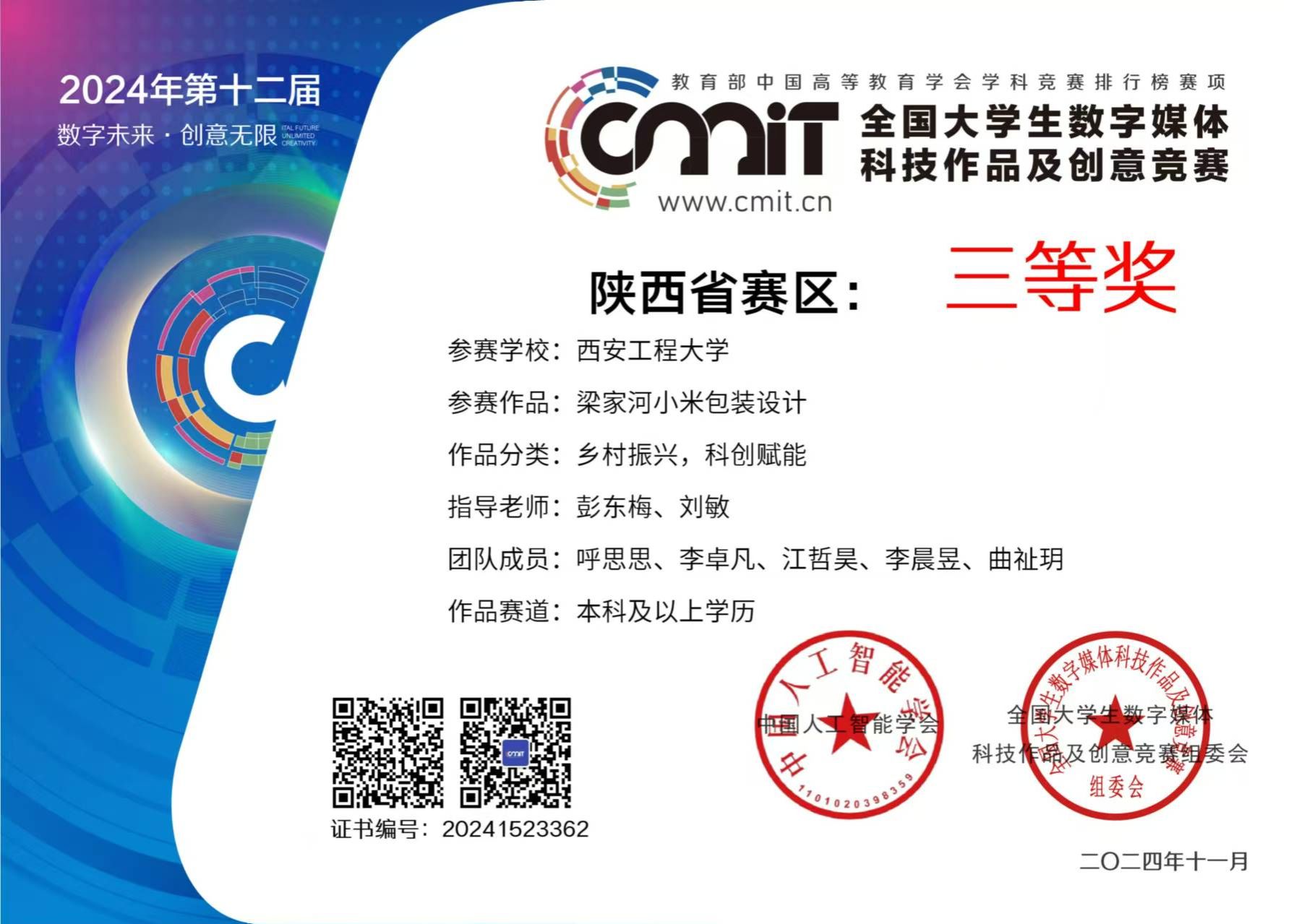 2024年团队梁家河小米包装设计作品获奖证书