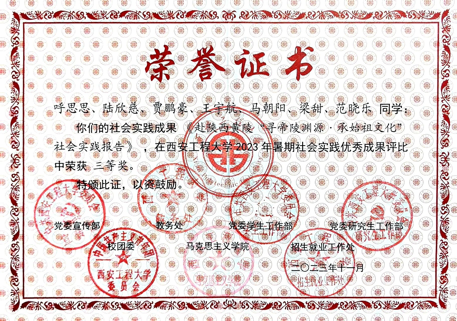 校级优秀成果证书