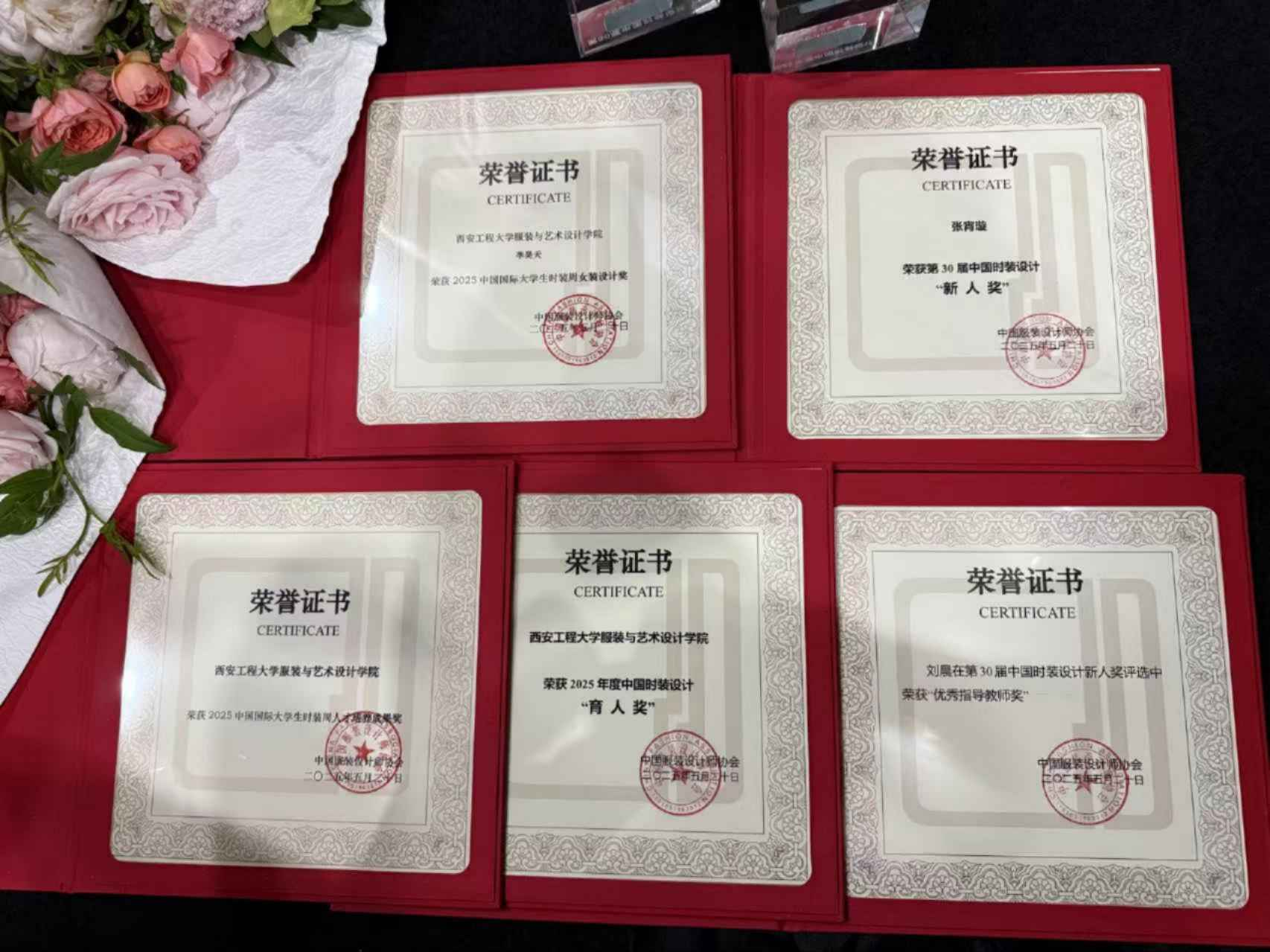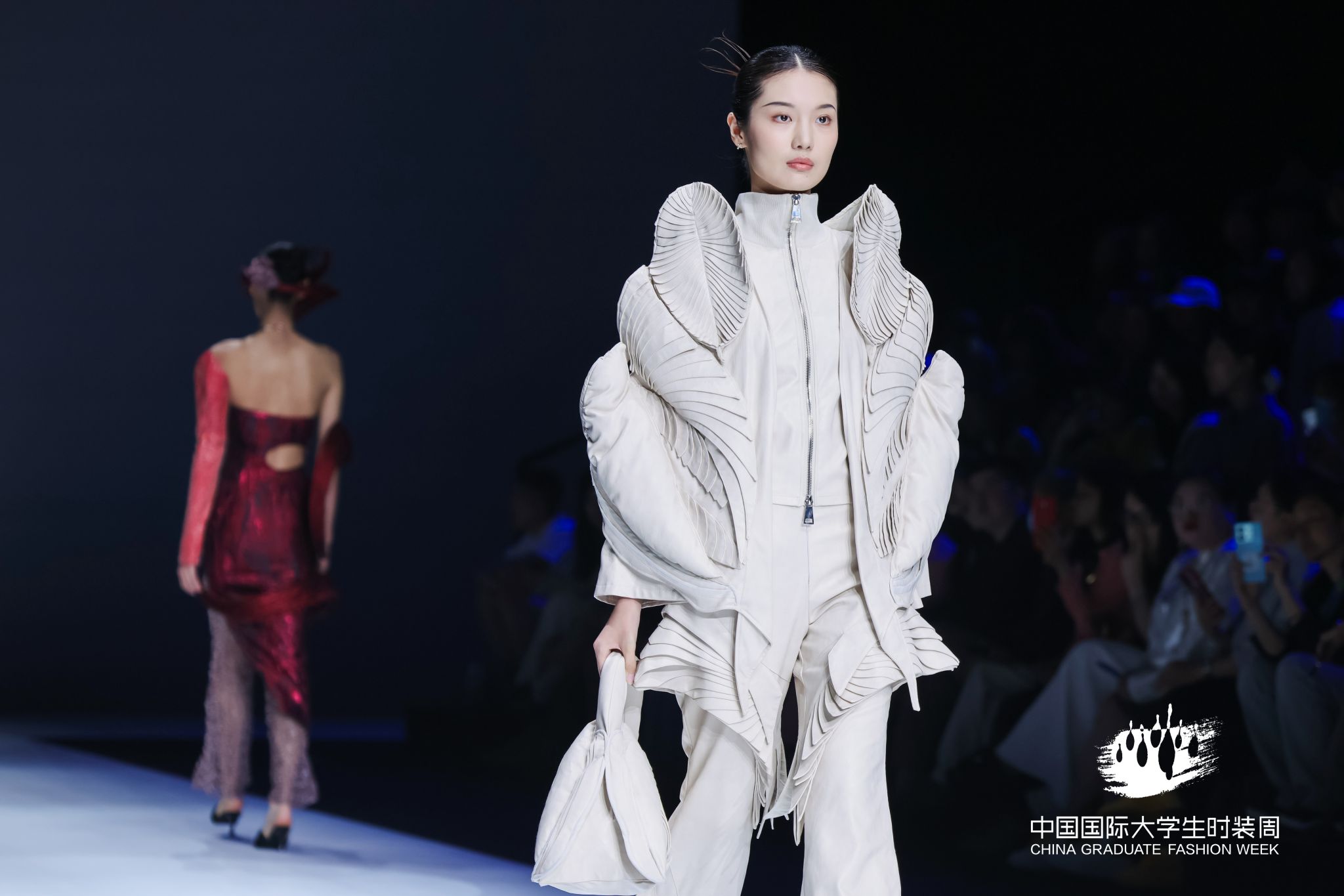 本次发布会共展出40余个精选系列、近90套优秀毕业设计作品,涵盖服装与服饰设计、服装表演、服装设计与工程三个专业,全面展示了学生的综合创新能力与专业实践成果。在20日晚举行的颁奖典礼上,学院获得2025年度中国时装设计“育人奖”和中国国际大学生时装周“人才培养成果奖”两项教育类大奖;服装与服饰设计专业张宵璇获第30届“新人奖”;李昊天同学荣获“女装设计奖”;教师刘晨荣获“优秀指导教师奖”。