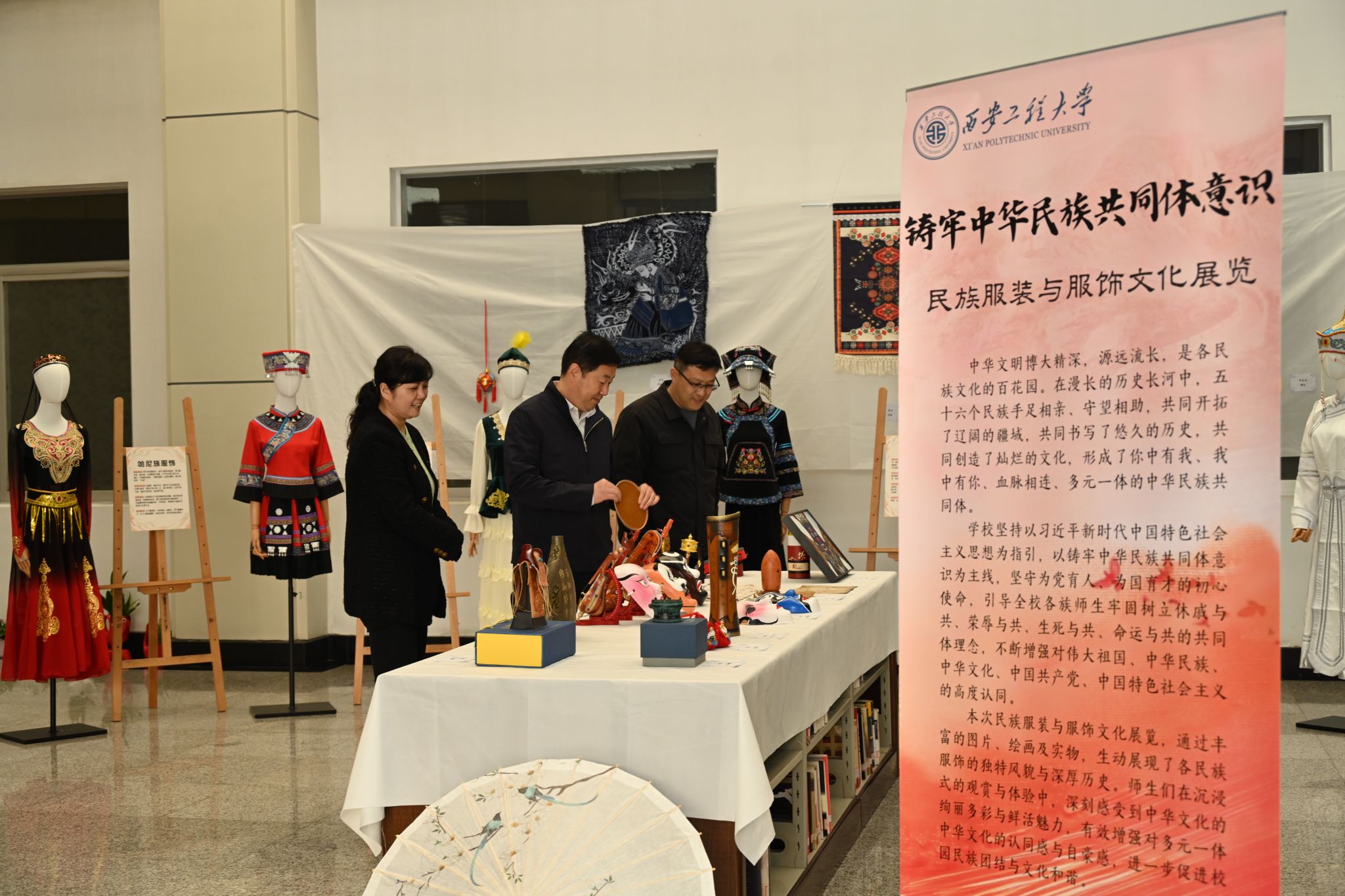 校党委副书记殷永建来到现场观展指导并对本次展览给予肯定,他指出,民族服饰是中华优秀传统文化的重要载体,本次展览以服饰为媒搭建文化交流平台,既彰显了学校服装专业的学科优势,又丰富了学校铸牢中华民族共同体意识教育的实践形式,有助于增进全校各族师生的文化认同与情感共鸣。