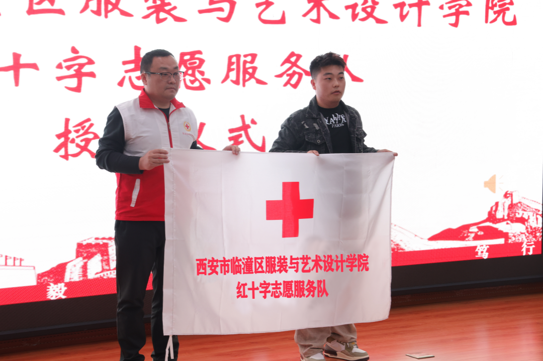 红十字志愿服务队授旗仪式。参与本次会议的有西安市临潼区红十字会宋世君、韩h漫