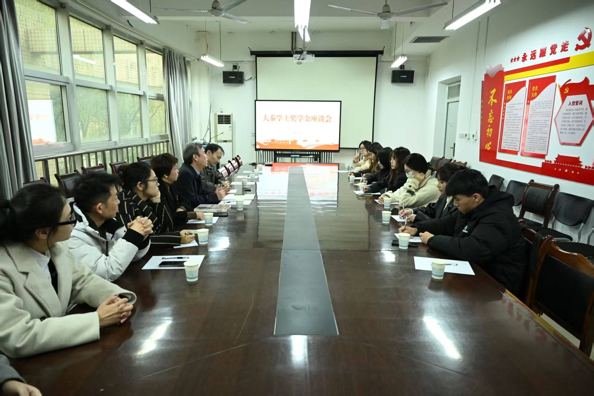 获得“大秦学士奖学金”的优秀学子展开座谈。学院党委副书记马磊及相关师生代表共同参与。座谈会现场气氛热烈,交流深入。