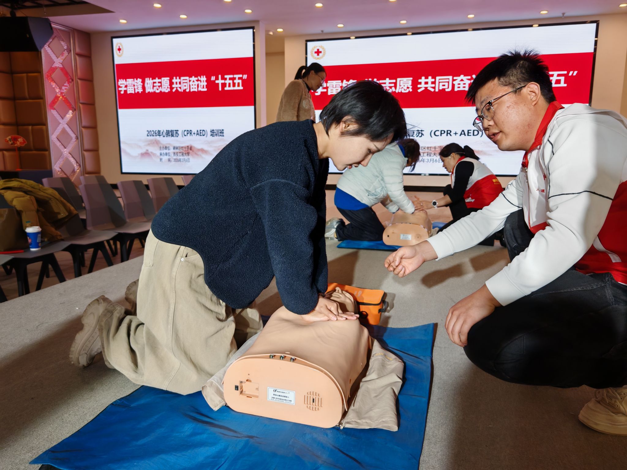 开展“巾帼学急救,暖心护平安”急救培训,为学院女教职工送上实用又暖心的节日礼物,碑林区红十字会陶春宁、陈莉、刘攀攀三位资深讲师受邀授课。