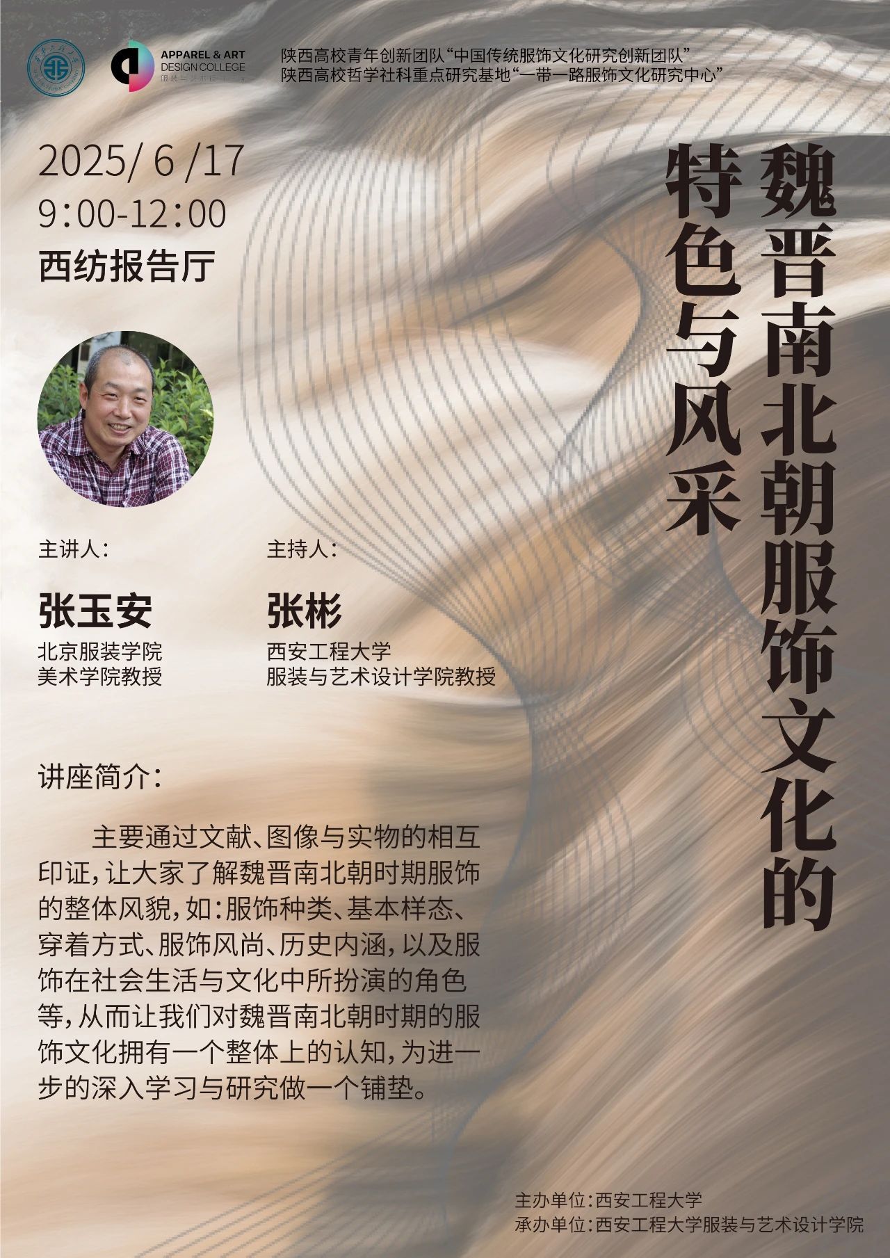 讲座简介:主要通过文献、图像与实物的相互印证,让大家了解魏晋南北朝时期服饰的整体风貌,如:服饰种类、基本样态、穿着方式、服饰风尚、历史内涵,以及服饰在社会生活与文化中所扮演的角色等,从而让我们对魏晋南北朝时期的服饰文化拥有一个整体上的认知,为进一步的深入学习与研究做一个铺垫。