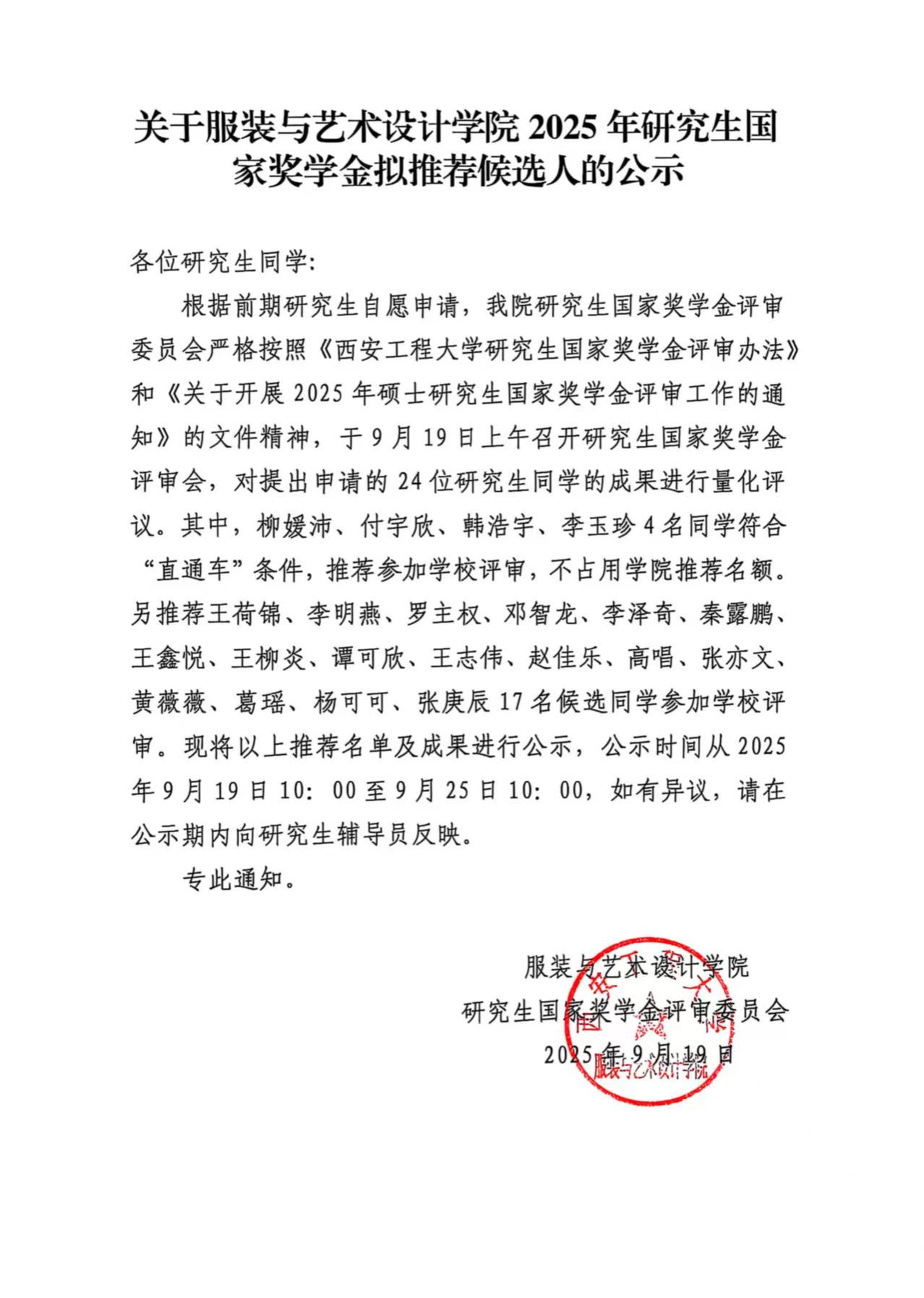 关于韩h漫 2025年研究生国家奖学金拟推荐候选人的公示