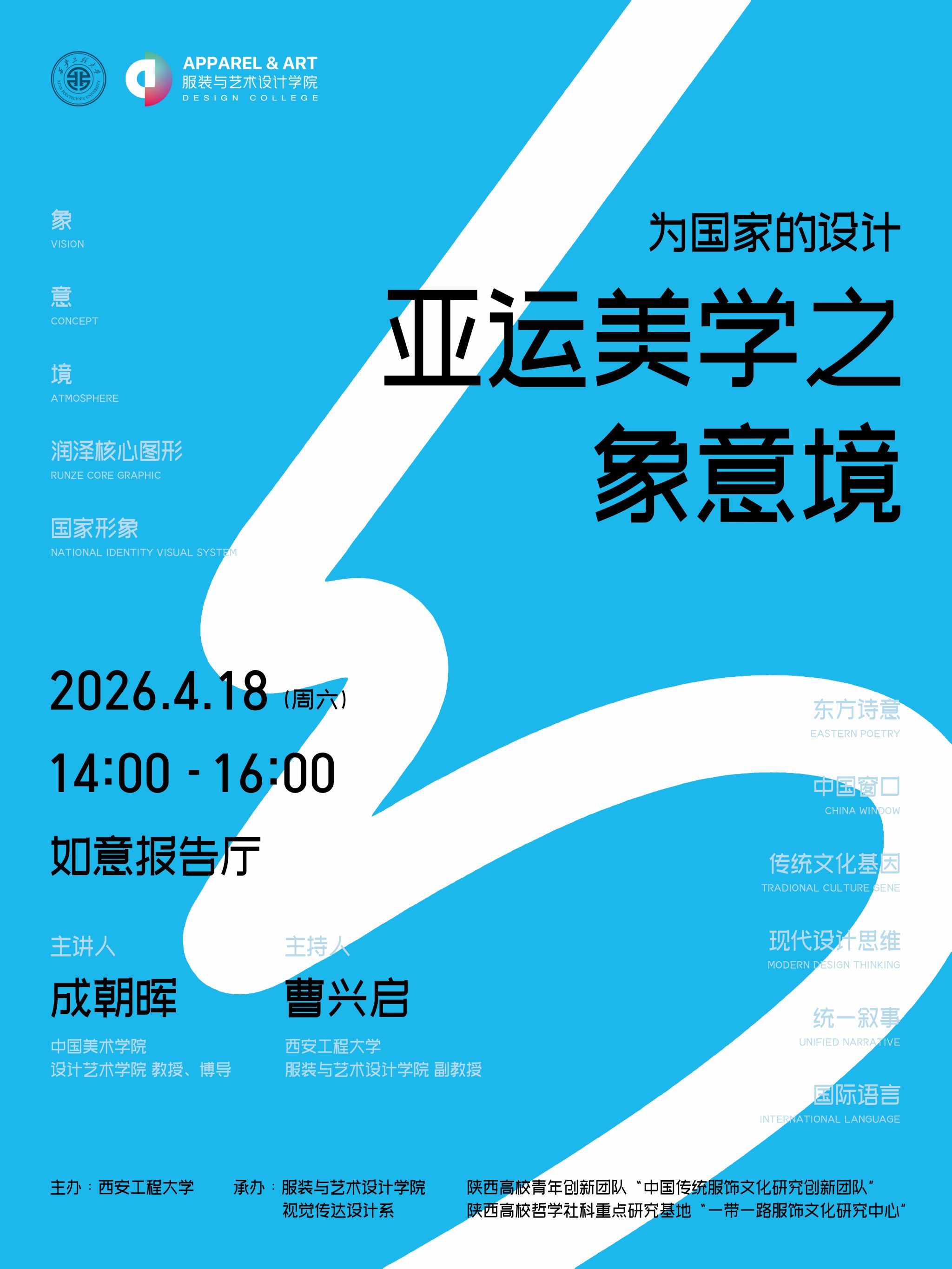 本周六14:00,邀请到中国美术学院成朝晖教授、博导、杭州亚运会主视觉设计者,在如意报告厅举行关于《为国家的设计:亚运美学的象·意·境》主题讲座,恭请各位莅临交流!