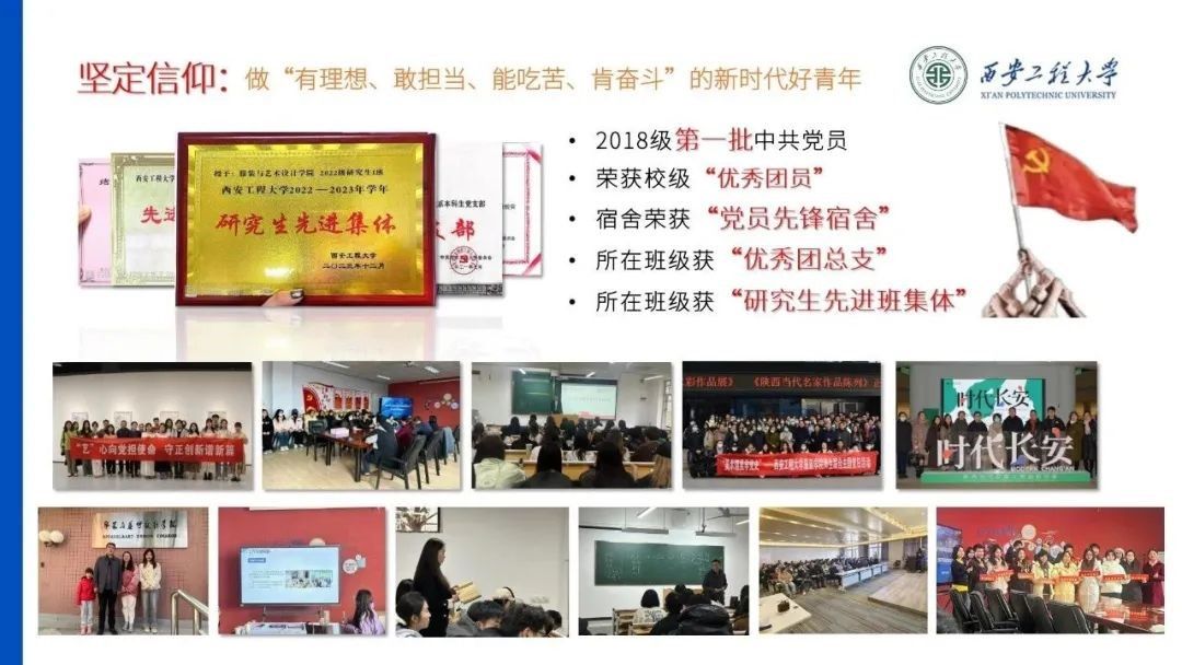 为发挥引领作用,增强青年凝聚力,姜敏乐保持刻苦学习、锐意进取的精神,积极参加各类专业赛事。目前已带领干事开展各类学习经验分享会,致力于培养优良学风。