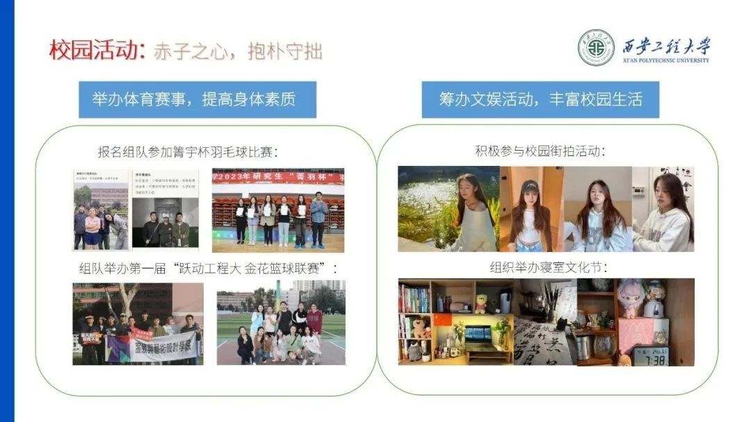 姜敏乐秉承全心全意为学生服务的宗旨,举办校园文化活动,提高学生身体素质、促进身心健康发展。积极协助老师完成研究生日常管理工作。