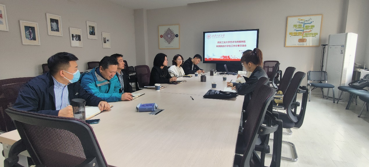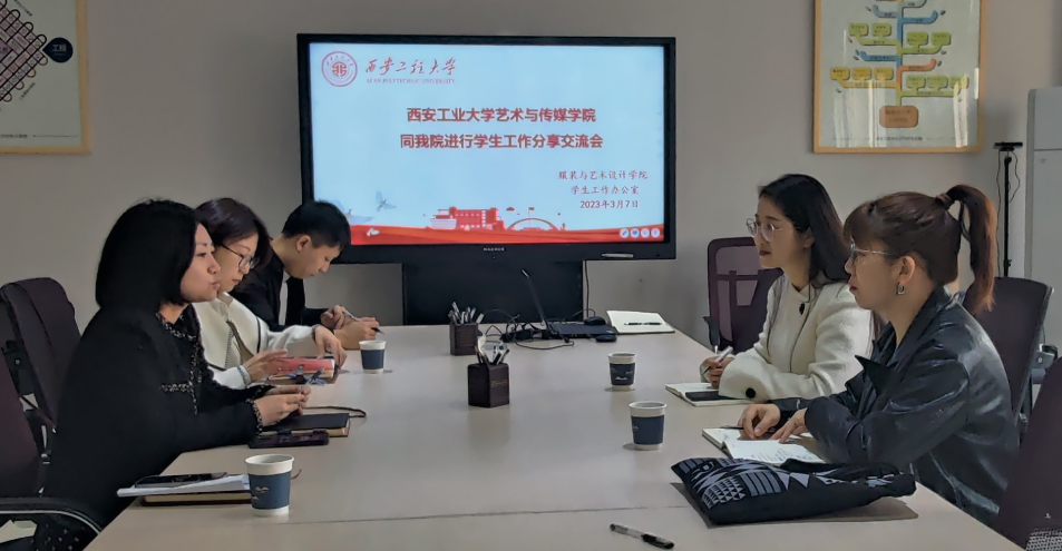 学工办邀请西安工业大学艺术与传媒学院学工办在金花校区服装楼举办辅导员沙龙。西安工业大学艺术与传媒学院学工办主任孙雅茹、团委书记杨娜娜与韩h漫