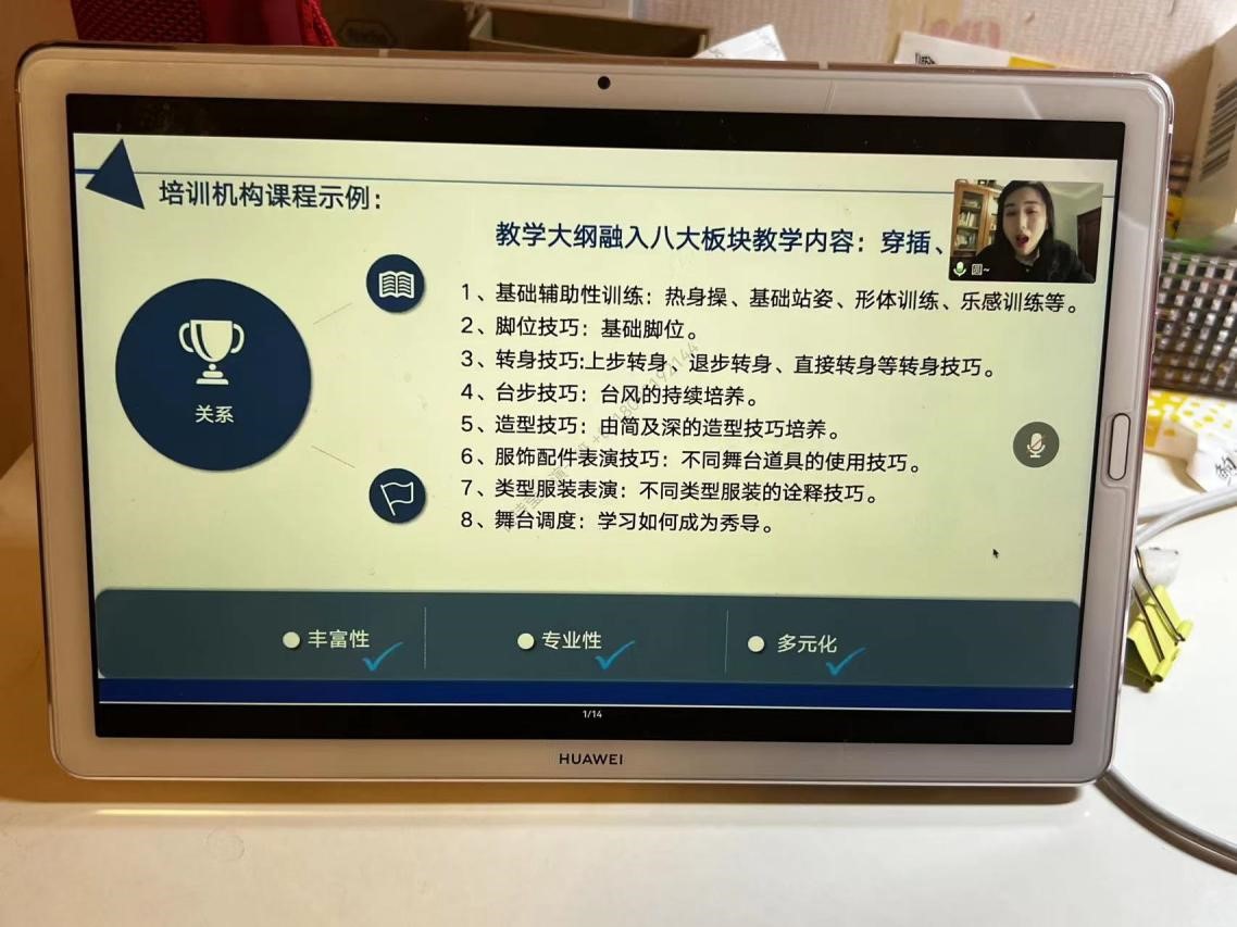 郝香圆老师从行业标准、行业内容与行业师资三个角度为同学们详细的讲解了少儿模特培训与艺考模特培训的市场现状与前景。除此之外,还介绍了模特教育行业教师所要具备的专业与教学能力。以培训机构课程示例为同学们详细的讲解了教学大纲的八大板块教学内容,即基础辅助性训练、脚位技巧、转身技巧、台步技巧、造型技巧、服饰配件表演技巧、类型服装表演与舞台调度。