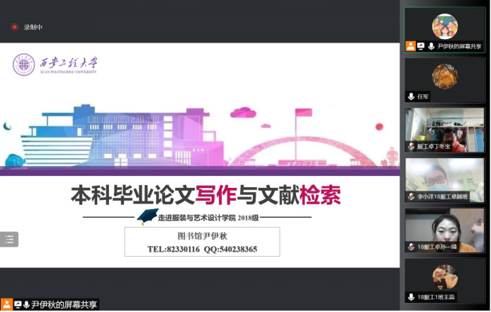 图书馆尹伊秋老师应服装工程系邀请,为2018级服装工程专业90余名学生在线进行了一场生动的“如何有效检索和利用图书馆文献信息资源”讲座。讲座由服装工程系主任任军老师主持,服装工程系全体教师参加。