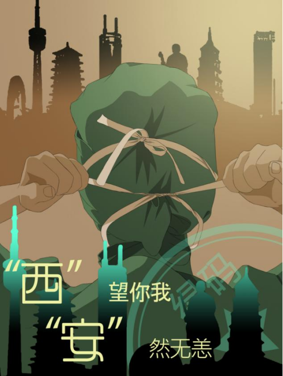 《抗疫守秦,“志”在必胜》20级美术02班 崔宁 数字插画