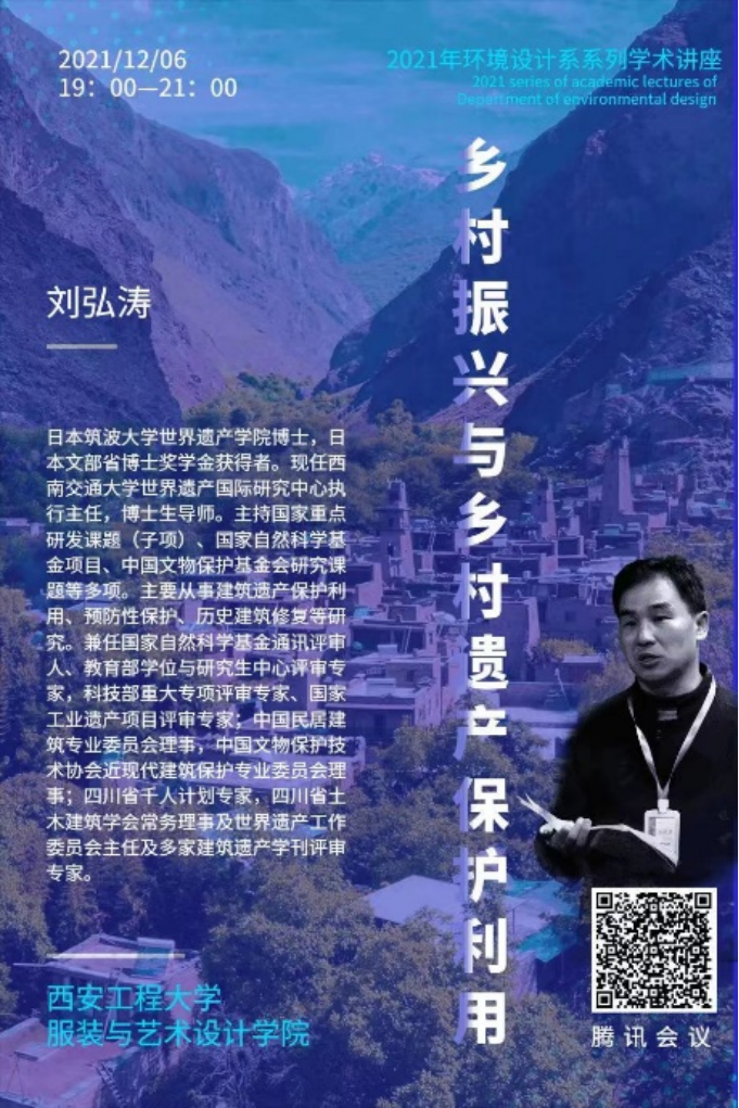 环境设计系举办2021年系列学术讲座。此次讲座由环境设计系刘蕊老师主持,邀请西南交通大学教授刘弘涛老师为师生进行名为《乡村振兴和乡村遗产保护》的专题讲座。全体环境设计系教师、研究生、本科生参与了此次讲座。