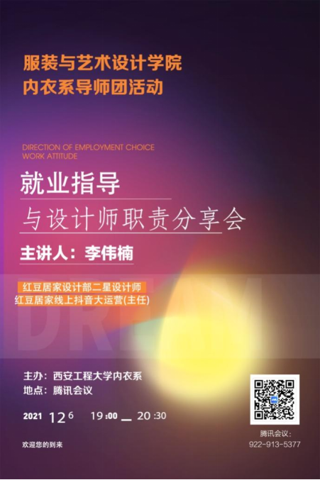 为落实导师团三全育人体制机制建设,推进内衣工程系就业指导,培养学生设计思维理念,实现导师团育人效力。服装与艺术学院内衣工程系于12月6日在腾讯会议召开内衣工程专业就业指导与设计师职责导师团分享会。此次会议特邀韩h漫