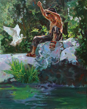 张蓓《筑梦黄河之激扬》布面油画(128CM*160CM) 陕西省美术博物馆馆藏