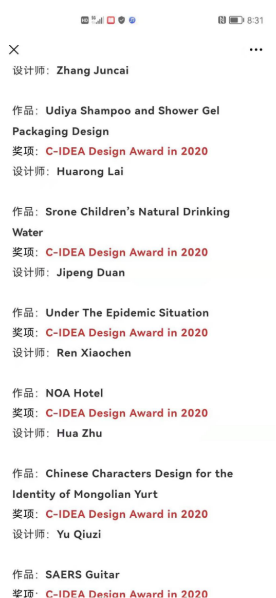2021年7月12日,2020 第二届C-IDEA设计奖评选落下帷幕,本届赛事收到了来自51个国家和地区的设计师、设计团体、设计机构、设计院校教师和学生的2072件作品,来自21个国家的35位国际评委对参赛作品进行了第一轮初评与第二轮复评,最终专业组与学生组共计221件作品进入了第三轮终评,角逐C-IDEA设计奖奖项。