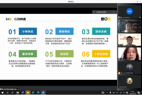 服装工程系邀请深圳博克时科技开发有限公司、博克CAD、云衣定制创始人贺宪亭董事长在线举行了博克科技实践专题讲座,服装工程系系主任任军、教师徐永驰、王悦、刘红彦、马飞等,以及2018级服装设计与工程专业同学共计100余人参加了此次讲座。
