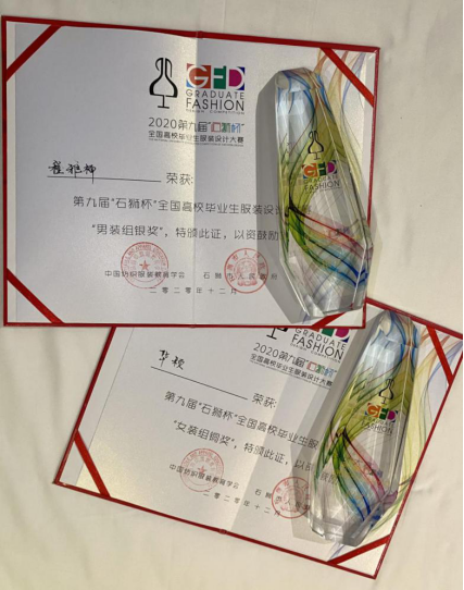 学生在第九届“石狮杯”全国高校毕业生服装设计大赛获银奖、铜奖奖杯、证书