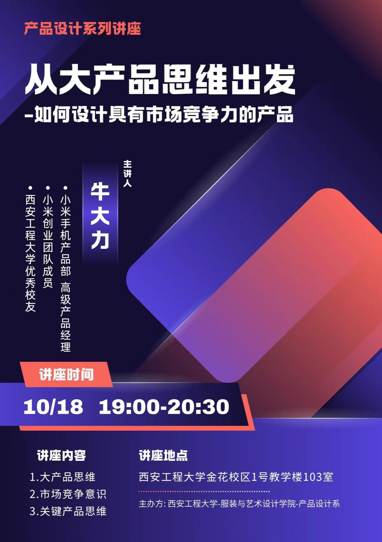 杰出校友——小米手机产品部高级产品经理、小米创业团队核心成员牛大力老师作为主讲嘉宾,旨在为学生们深度剖析市场竞争环境下的产品思维与大产品理念。