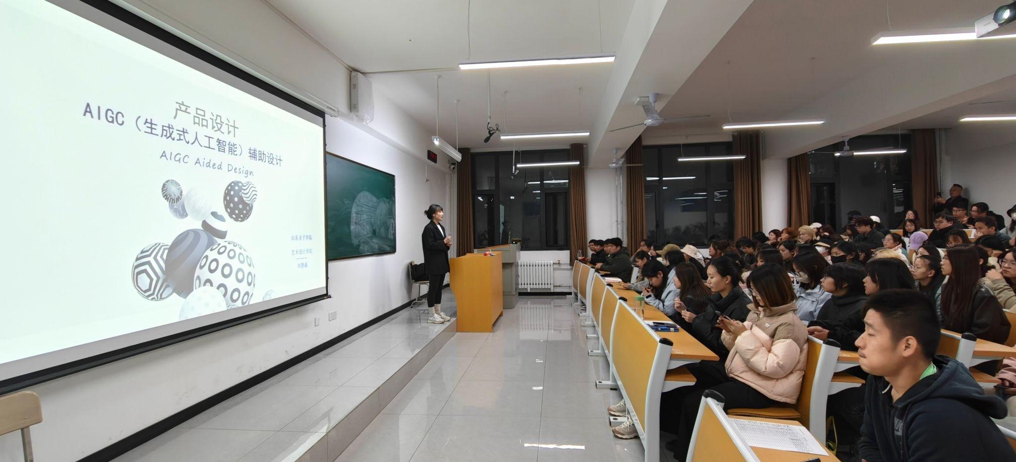 讲座中,刘静淼老师详细阐述了AIGC(人工智能生成内容)的发展、工具的变革,并探讨了这些变革如何辅助产品设计的方法。刘老师通过生动的案例和深入的分析,展示了人工智能在设计领域的最新应用和发展趋势。同时,刘老师还分享了学生如何应用这些先进技术来提升设计水平的实践经验。她鼓励学生们积极拥抱新技术,勇于尝试和创新,将人工智能与设计思维相结合,为产品设计注入新的活力和灵感。