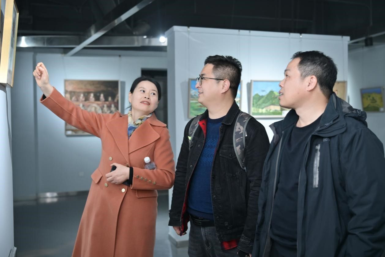 开幕式上,院党委书记苏博对师生课程作业展开幕表示祝贺,对老师的专注和学生的付出给予肯定,鼓励学生在今后创作中不断拓展艺术视野增强艺术素养。李艳希望以专业艺术展为契机与学院长期交流合作,助力文化艺术活动繁荣发展,共同为学校美育贡献力量。张树渊先生对展览成功开展表示祝贺,对同学们的作品表示肯定,表示会继续加强美协等专业学术机构与高校的合作交流,共同推进文化艺术事业的进步。李朝霞肯定了写生路线调整对学生创作的文化影响,介绍了学院在教学软硬件方面的优化改善,希望同学们在专业上更加努力。刘波作为带队教师代表回顾了写生实践的经验和感受,并在展览现场为观展嘉宾师生讲解介绍了作品。