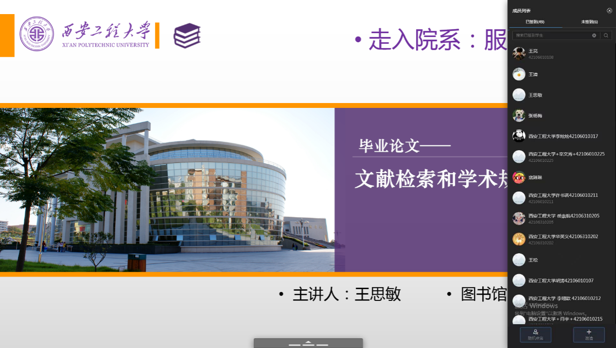 服装工程系依托在线教学平台 "雨课堂",为 2021 级服装设计与工程专业全体毕业生带来了一场题为《文献检索和学术规范》的专题培训。本次活动特邀校图书馆王思敏老师担任主讲,系统指导学生构建科学的学术研究方法论。